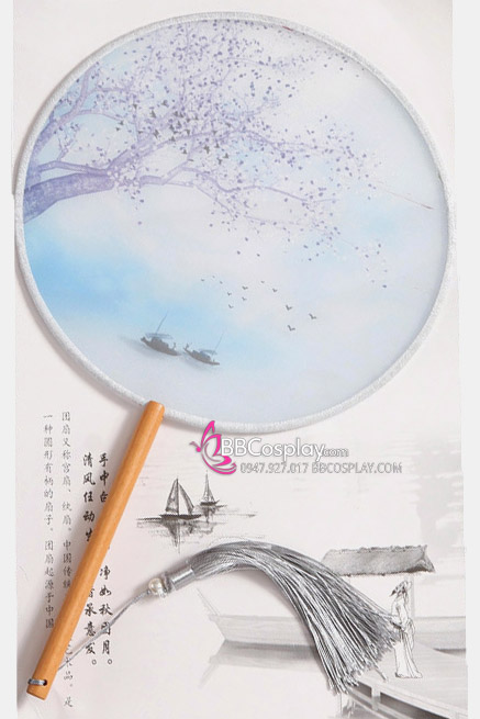 Quạt Tròn Cổ Trang Quạt Mỹ Nhân Hoa Tím Và Con Đò