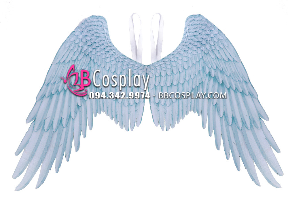 Cánh Thiên Thần Trắng Xanh được làm từ khung kẽm và giấy in 3D, cả hai mặt cánh đều in đồng đều. Cánh có gắn dây thun giúp khách hàng đeo vai dễ dàng.