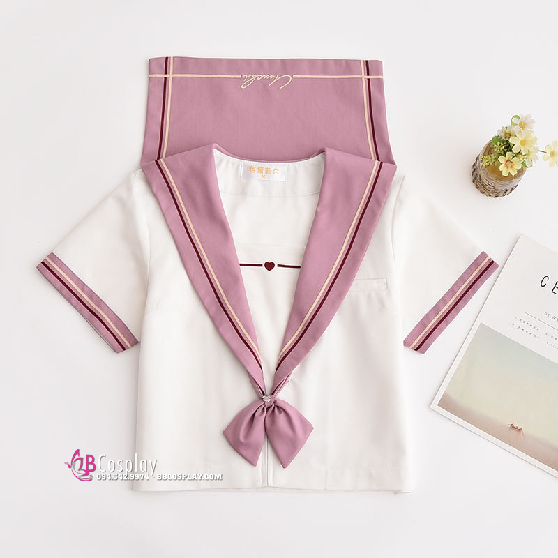 Đồ Nữ Sinh Nhật Bản 2020 Cổ Hồng Áo Trắng