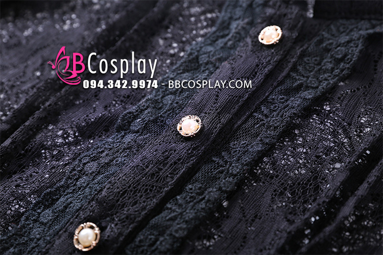 Trang Phục Nàng Hầu Nhật Đen Tạp Dề Trắng Cổ Áo Lá Sen