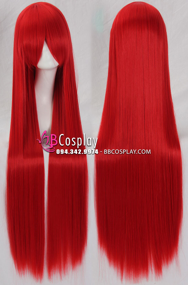 Tóc Giả Đỏ Rực Đỏ Dài 100Cm