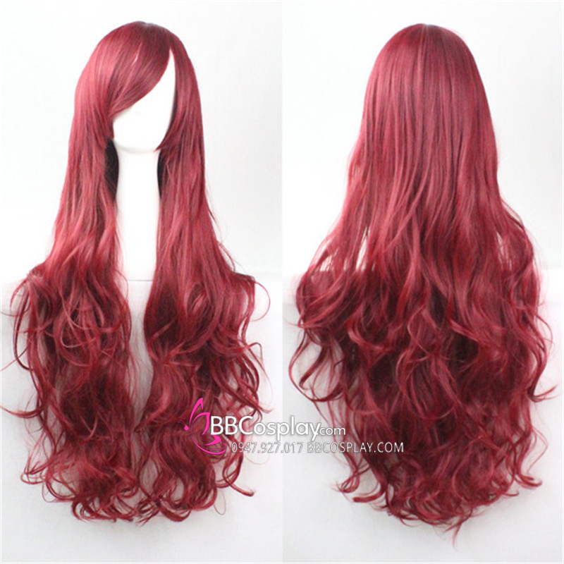 Tóc Giả Đỏ Rượu Xoăn Dài 60Cm