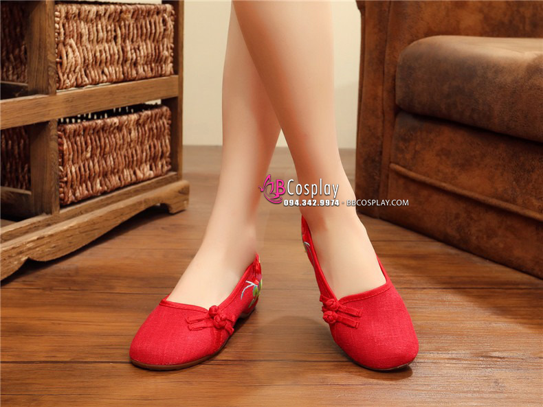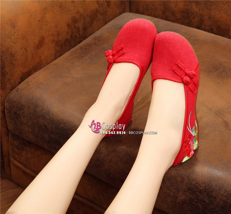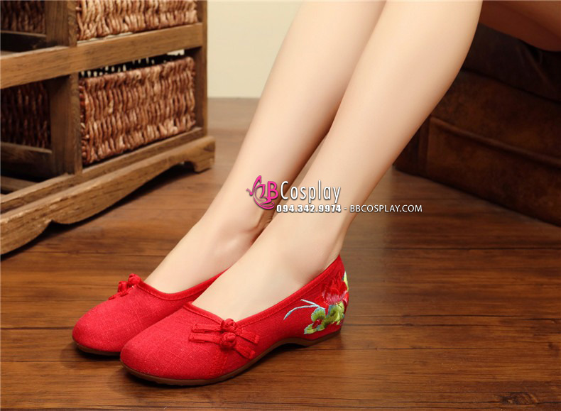 Hài Vải Hán Phục Đỏ Thêu Hoa
