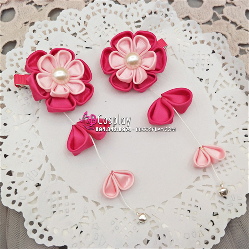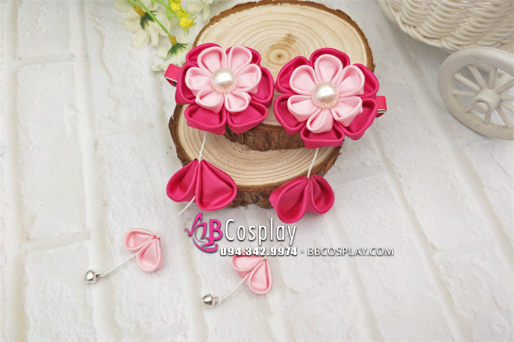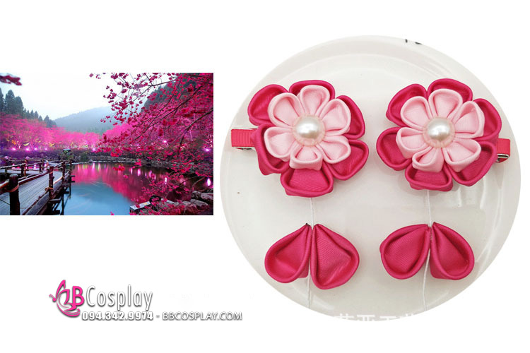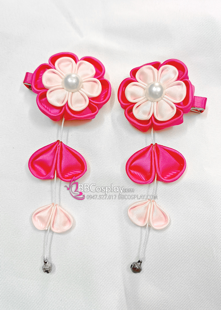 Kanzashi Hồng Cài Tóc Nhật Bản - Hoa Hồng