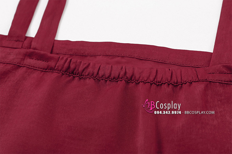 Trang Phục Nàng Hầu Cổ Lá Sen Kèm Tạp Dề Caro - Màu Đỏ