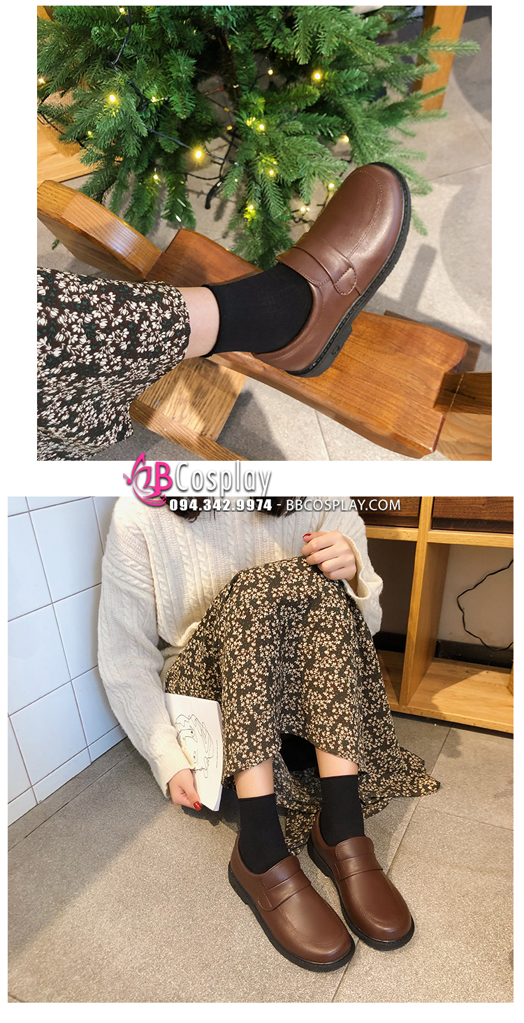 Giày Nữ Sinh Nhật Bản Màu Nâu Socola