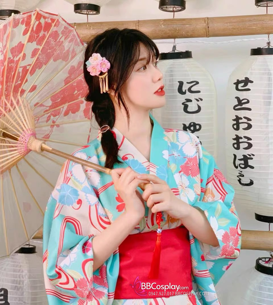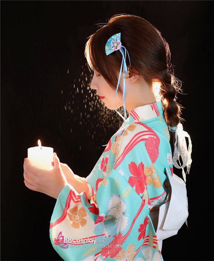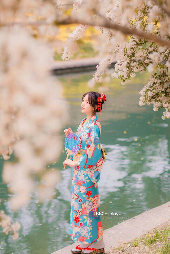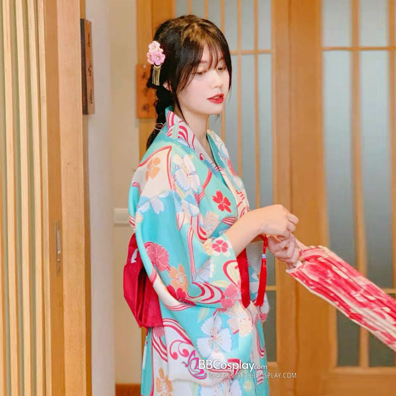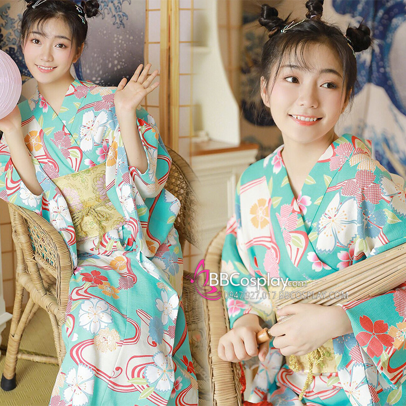 Áo Yukata Xanh Hoa Anh Đào