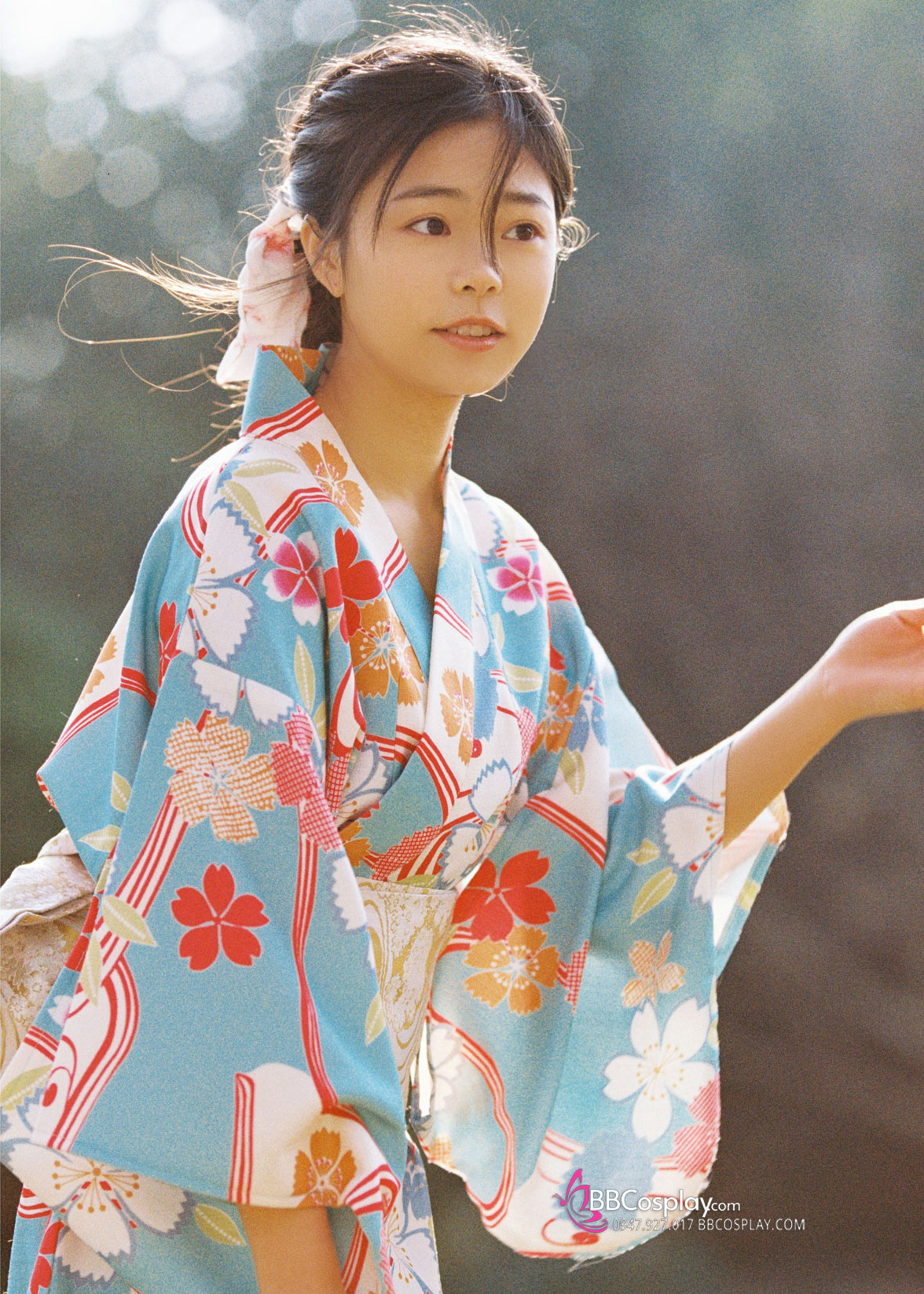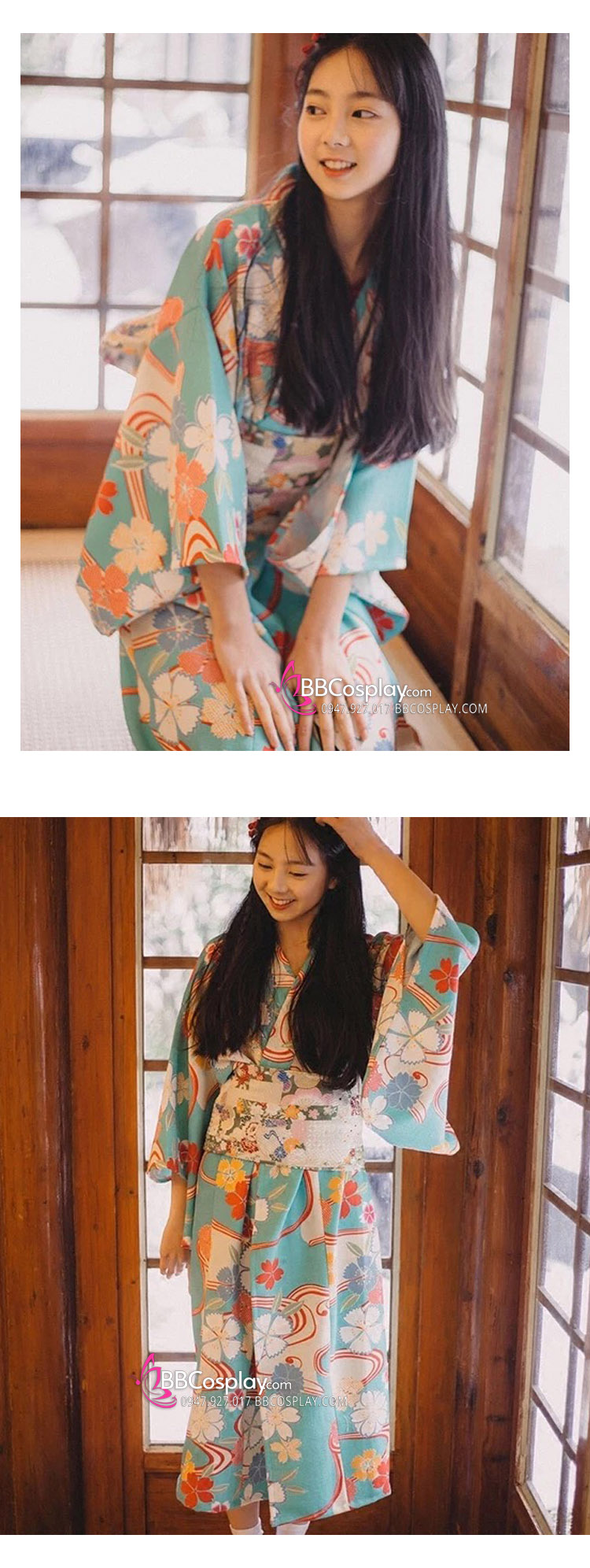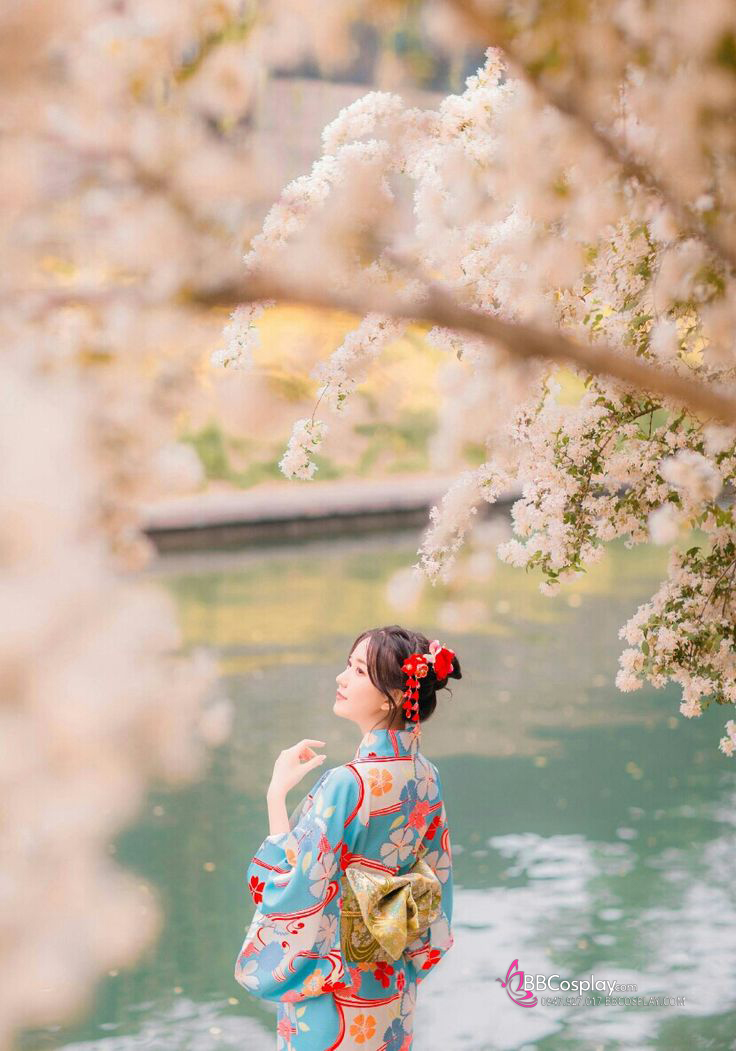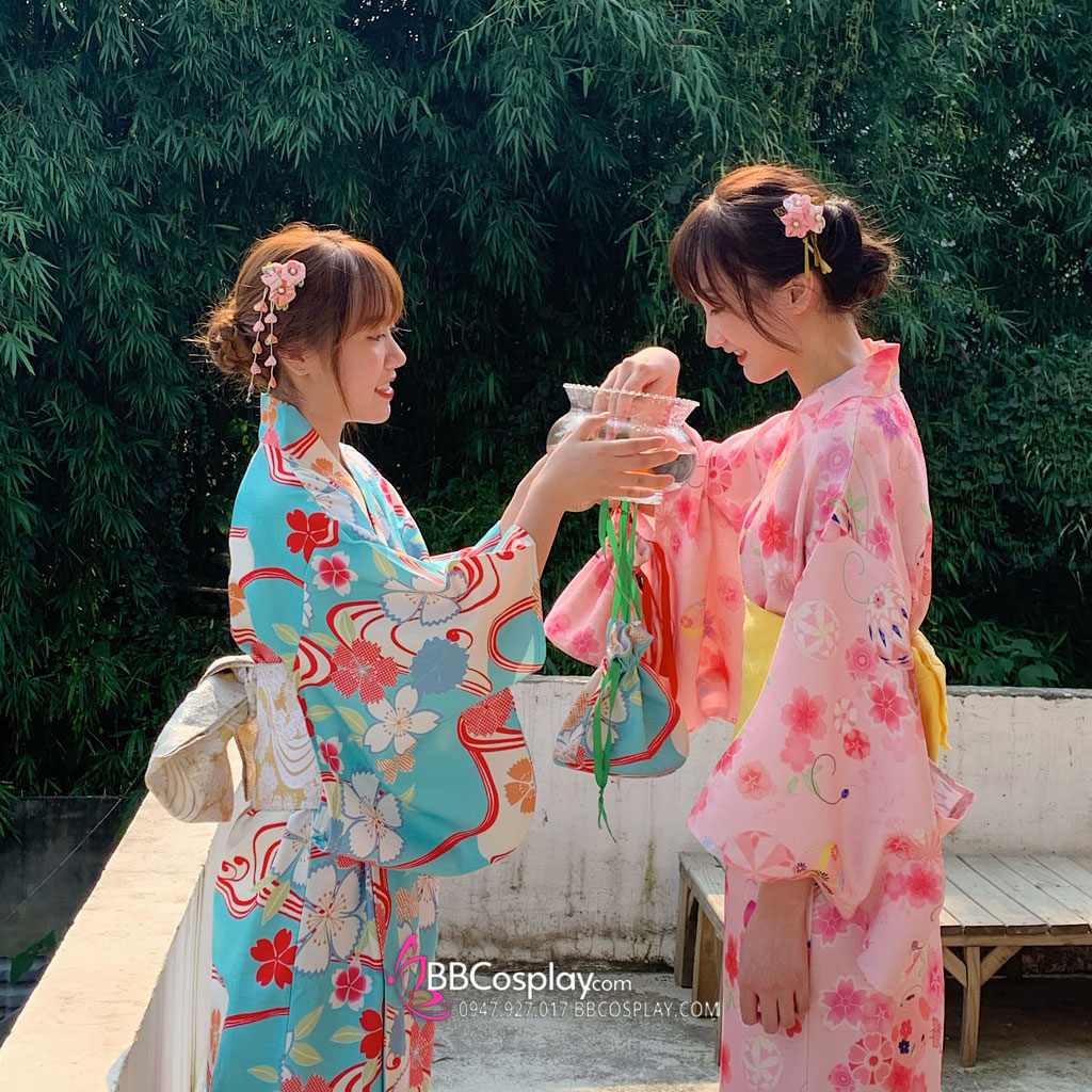 Áo Yukata Xanh Hoa Anh Đào