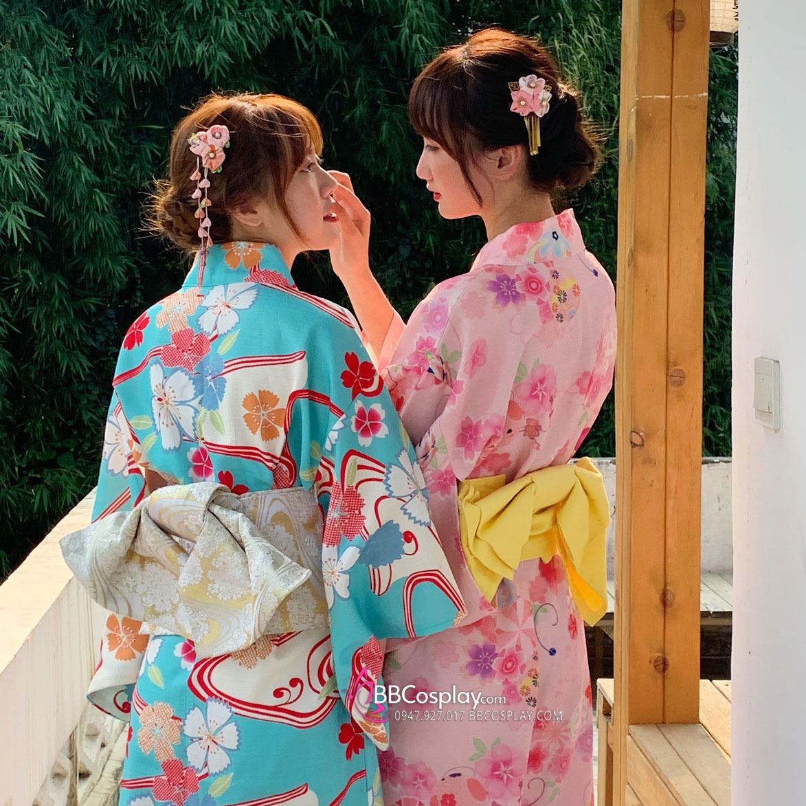 áo + obi ( mẫu tự chọn) + 1 dây đai phụ +1 kanzashi ( ngẫu nhiên)+ guốc gỗ + lót cổ + obi pad + cho mượn kèm quạt xếp
