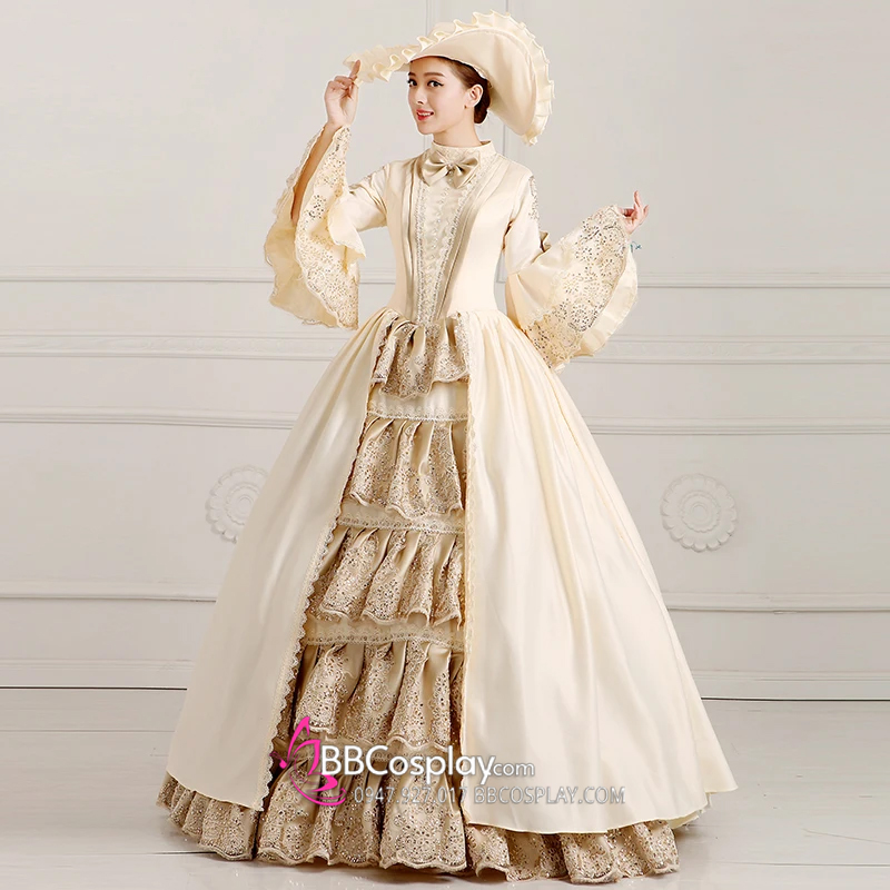 Lấy cảm hứng từ phim điện ảnh về giới hoàng gia, trang phục nữ bá tước tại BBCosplay là một bản mô phỏng hoàn hảo của trang phục hoàng gia. Trang phục thể hiện sự kiêu sa, sang trọng và thanh lịch của giới quý tộc với phần thân váy được làm xòe và xếp ly một cách khéo léo và tỉ mỉ. Phần tay áo cũng được cắt may kĩ lưỡng và phối ren hài hòa. Các chi tiết hầu hết có nhũ vàng, kết hợp với màu đỏ chủ đạo của chất liệu kaki ren làm tăng thêm vẻ quyến rũ, bí ẩn cho người mặc. Chúng tôi còn hỗ trợ đi kèm trang phục nón bá tước giúp tôn thêm vẻ hoành tráng của trang phục.
