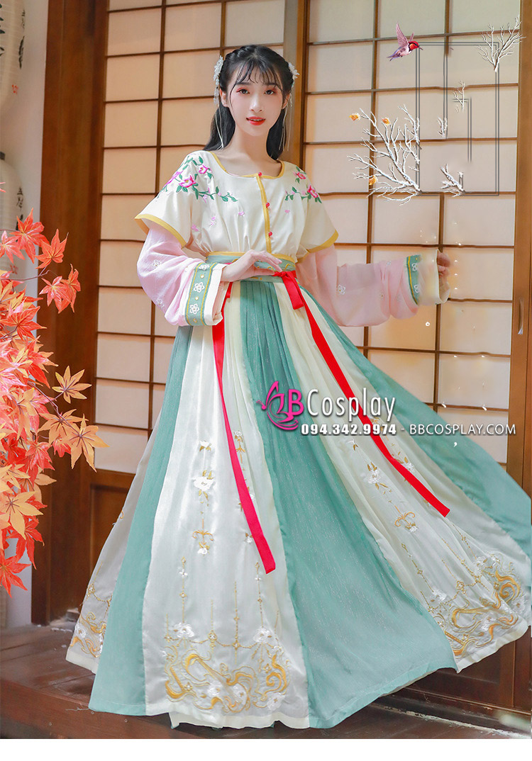 Áo lót + áo trên thêu + váy thêu chuẩn thiết kế 4.5m