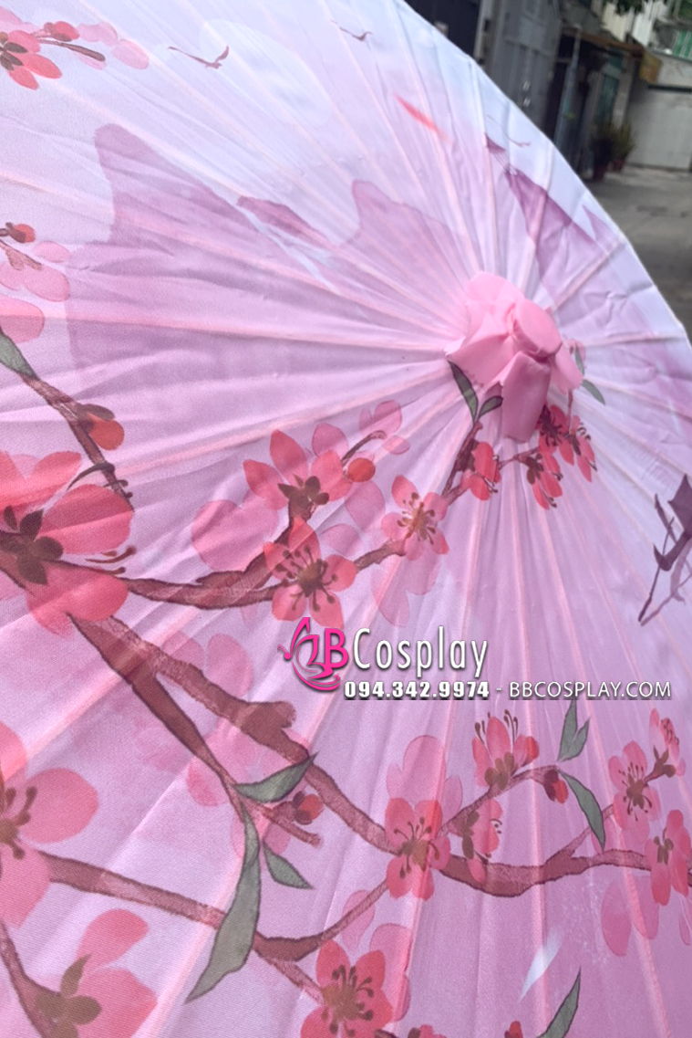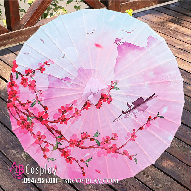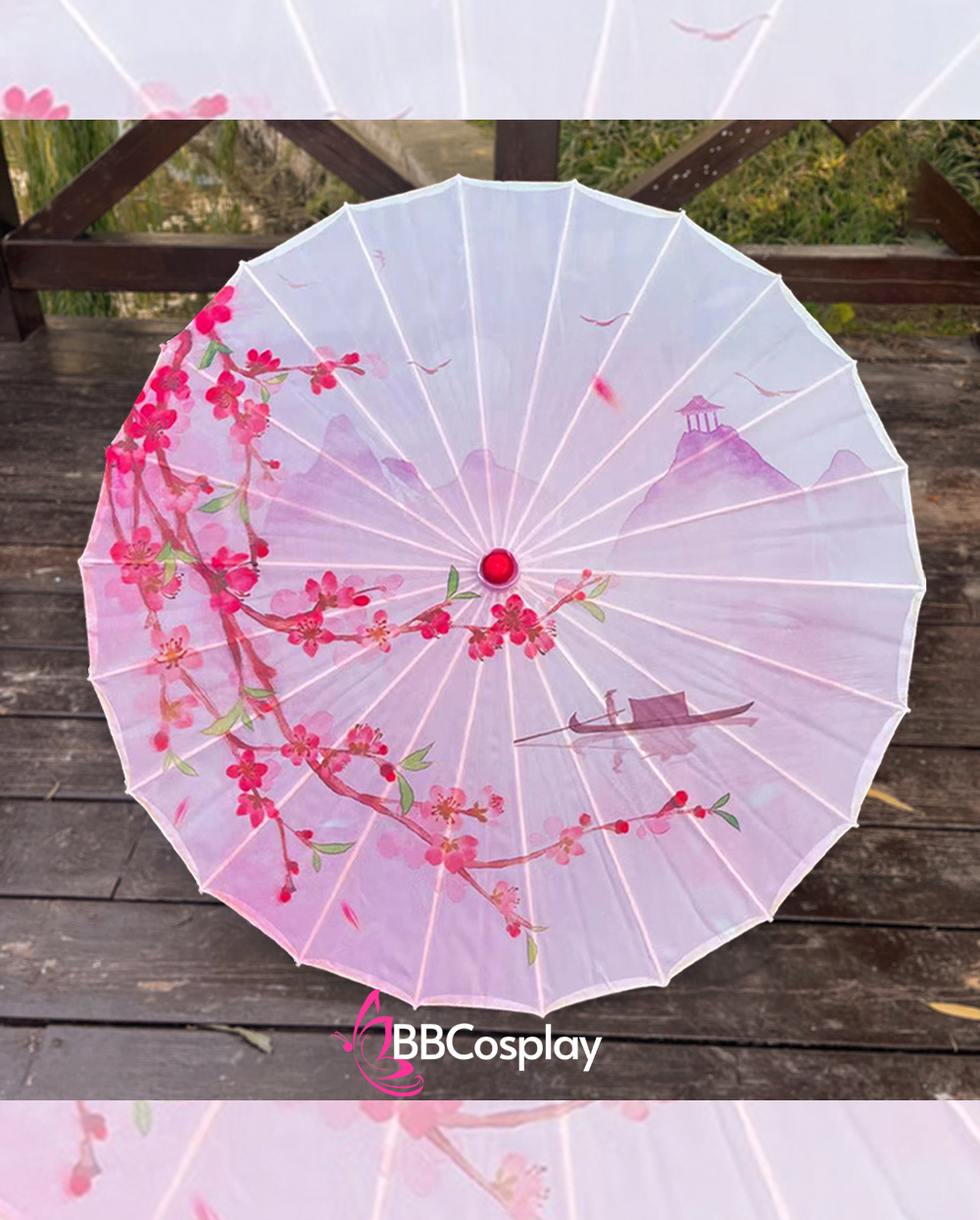 Dù Vải Cổ Trang Hoa Anh Đào Màu Đỏ