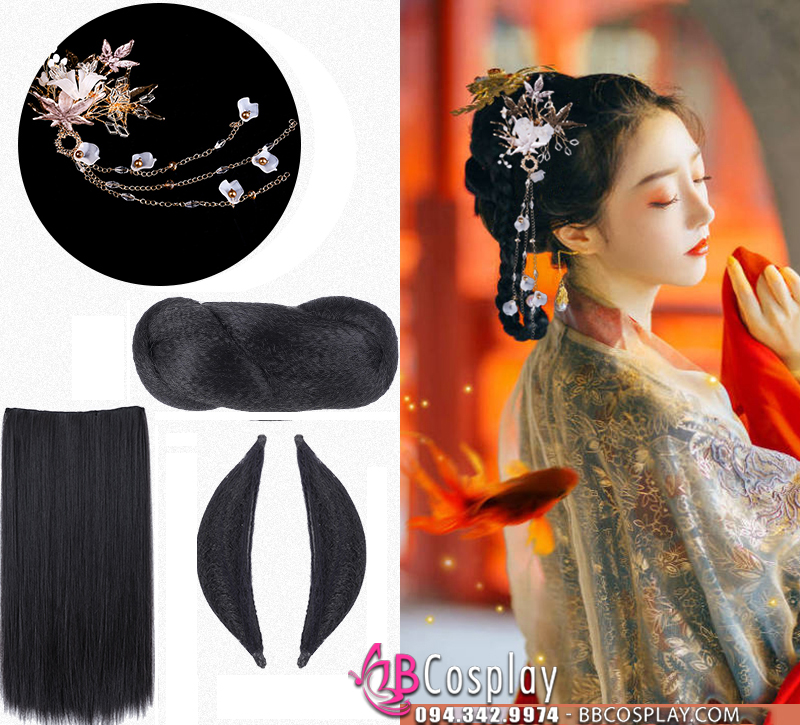Nếu bạn đang tìm một bộ búi tóc cổ trang cho tiết mục biểu diễn, hóa trang, cosplay, buổi chụp ảnh thì mẫu tóc này sẽ là một sự lựa chọn phù hợp cho bạn.Tùy phong cách và ý tưởng mà cả nam và nữ đếu có thể xử dụng được. Vui lòng liên hệ chúng tôi để được tư vấn cụ thể hơn.