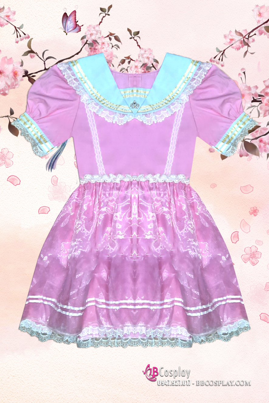 Đồ Nàng Hầu Maid Hồng Tạp Dề Trắng Kèm Nhiều Nơ