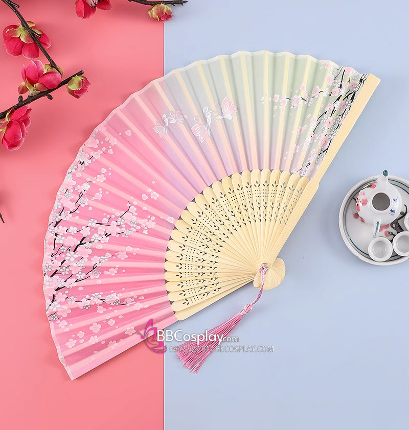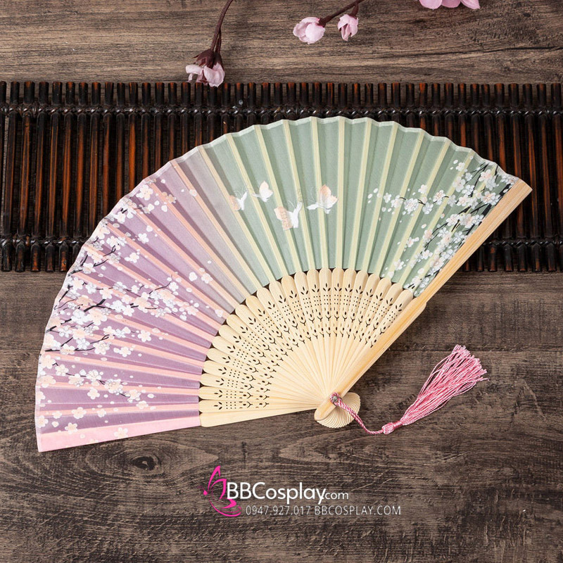 Uchiwa Quạt Vải Nhật Bản Hồng Xanh Hoa