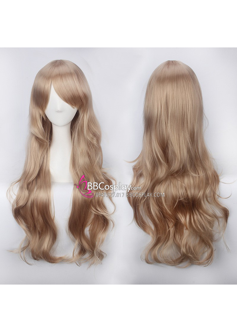 Tóc Giả Nâu Sáng Xoăn Dài 80Cm