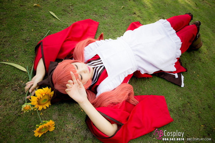 Đồ Nàng Hầu Maid Hồng Tạp Dề Trắng Kèm Nhiều Nơ
