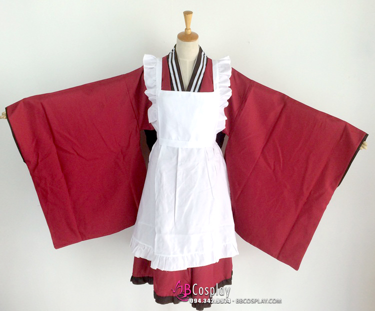 Trang Phục Nàng Hầu Nhật Đen Tạp Dề Trắng Cổ Áo Lá Sen