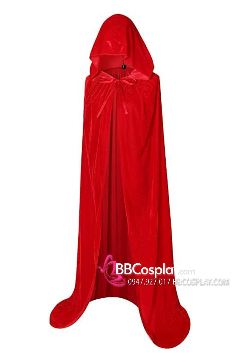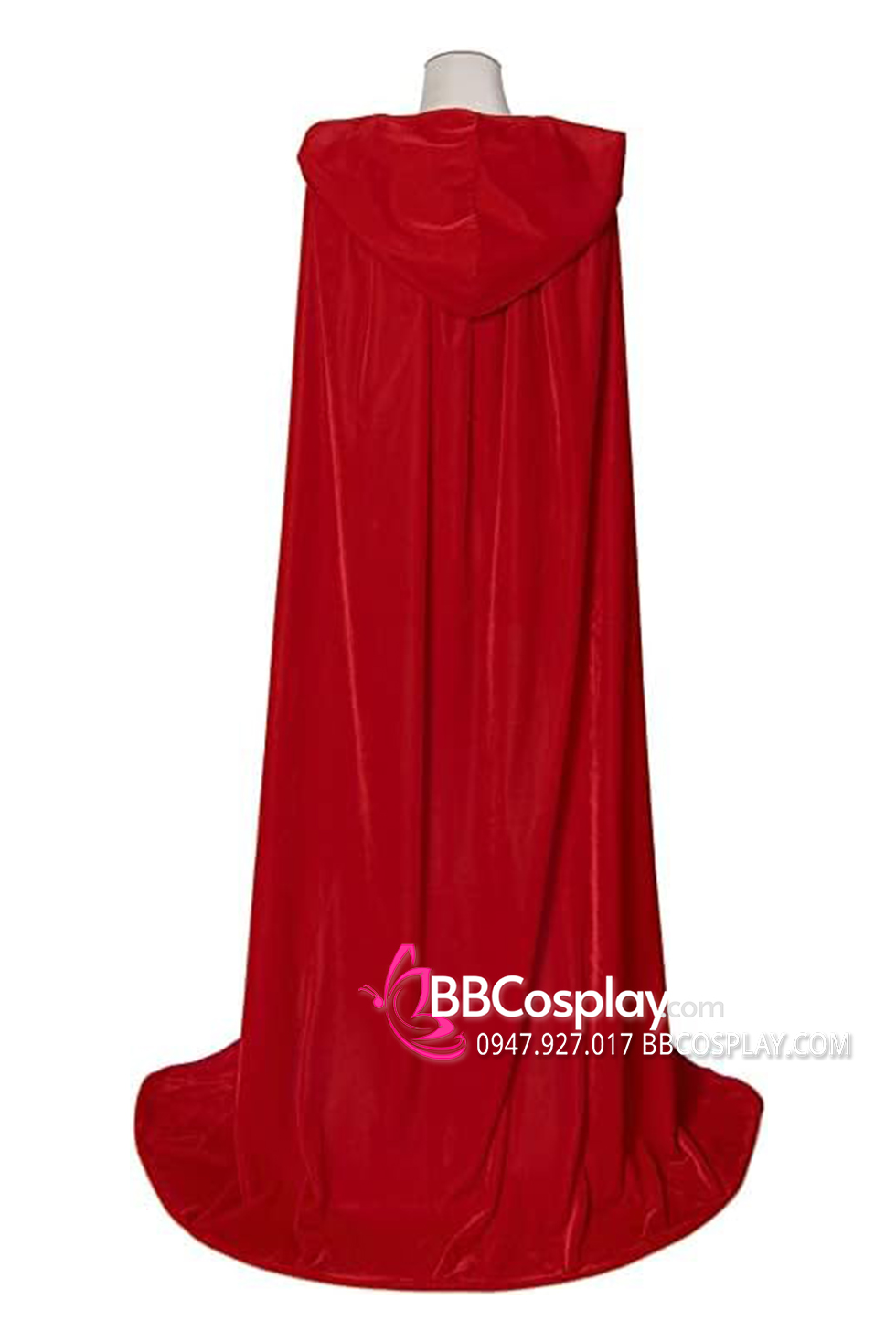 choàng đỏ nhung dài - nón may 2 lớp