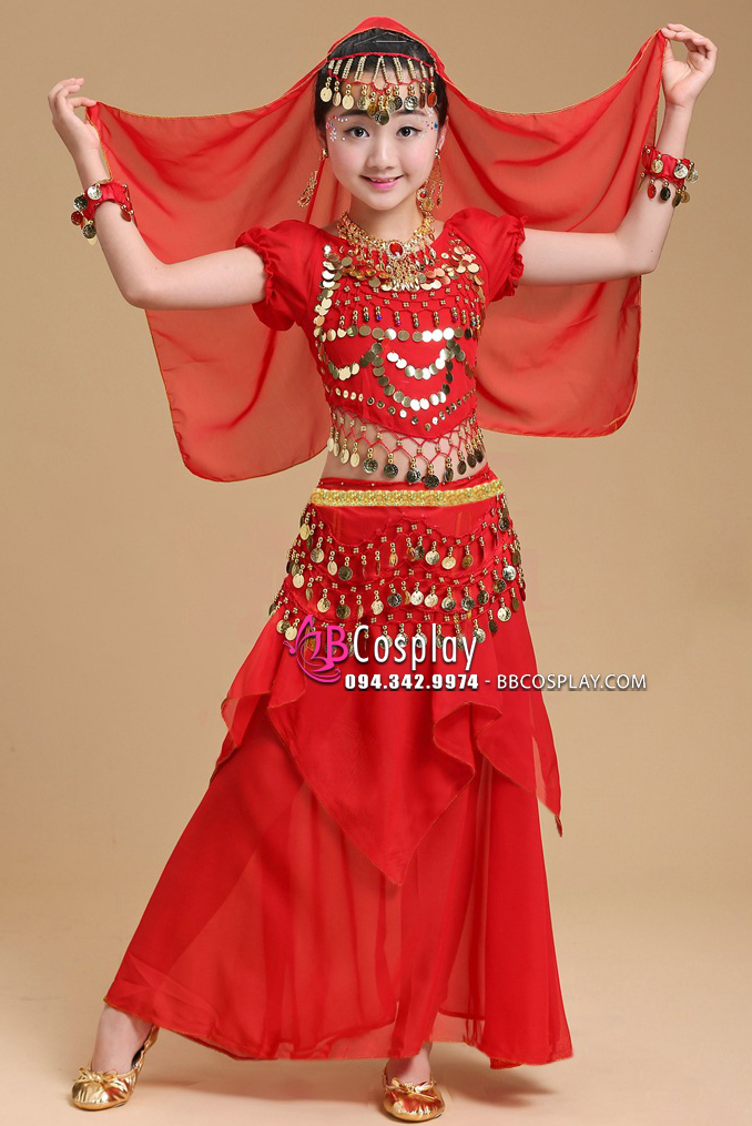 Trang Phục Nàng Hầu Cổ Lá Sen Kèm Tạp Dề Caro - Màu Đỏ