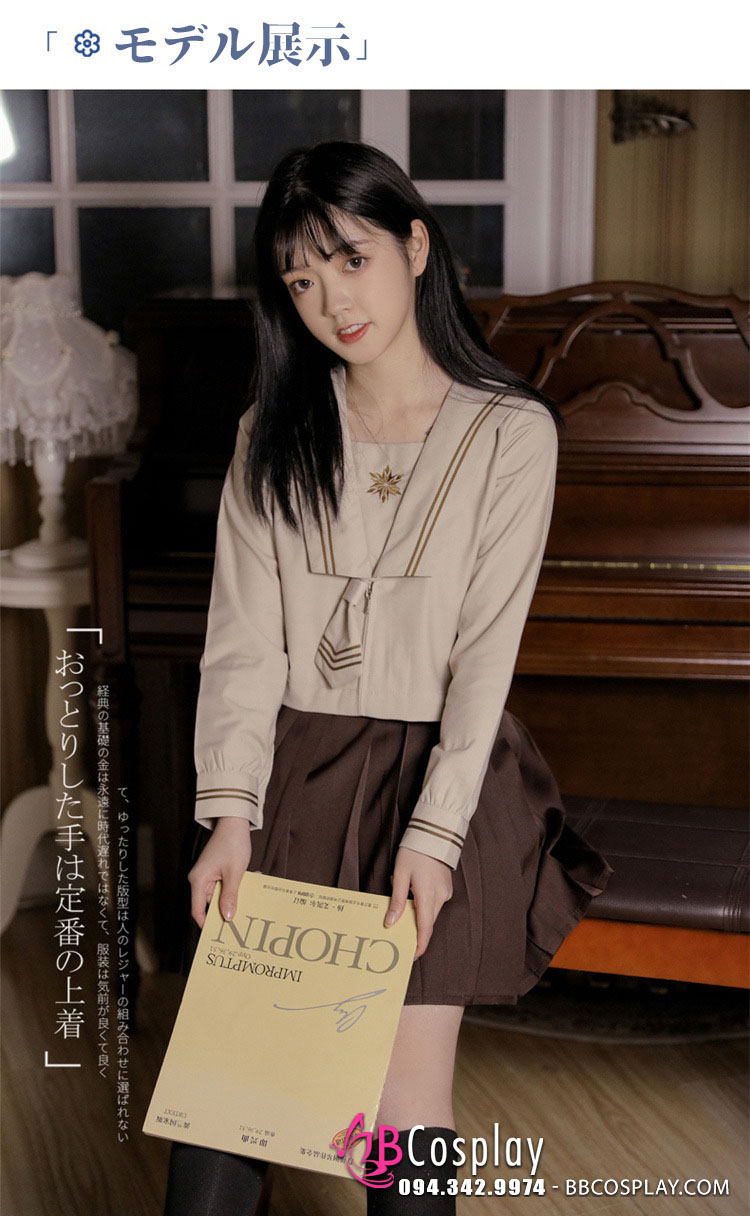 Đồng Phục Nữ Sinh Nhật Seifuku Cafe Sữa Dài Tay
