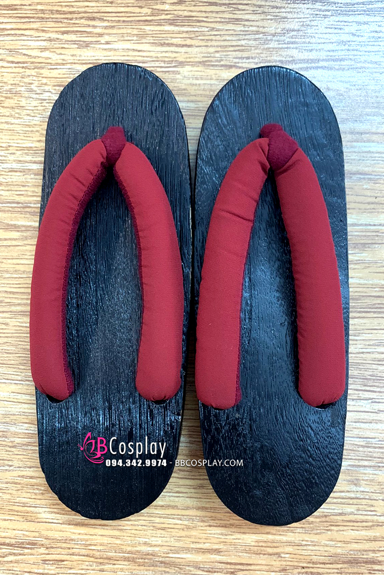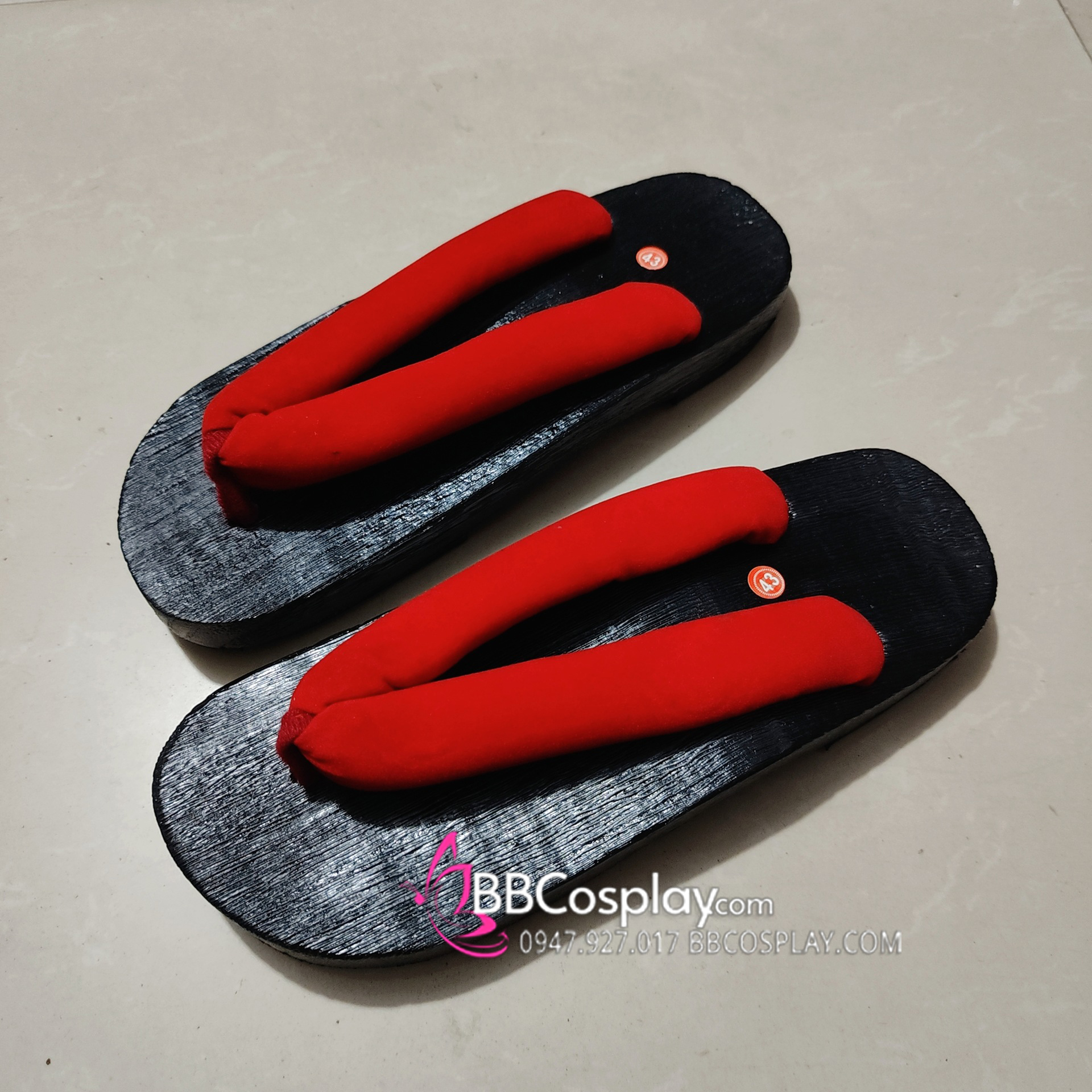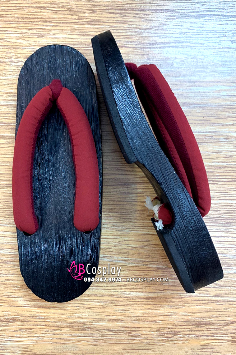 Guốc Gỗ Nhật Đế Đen Quai Đỏ Đế Thấp