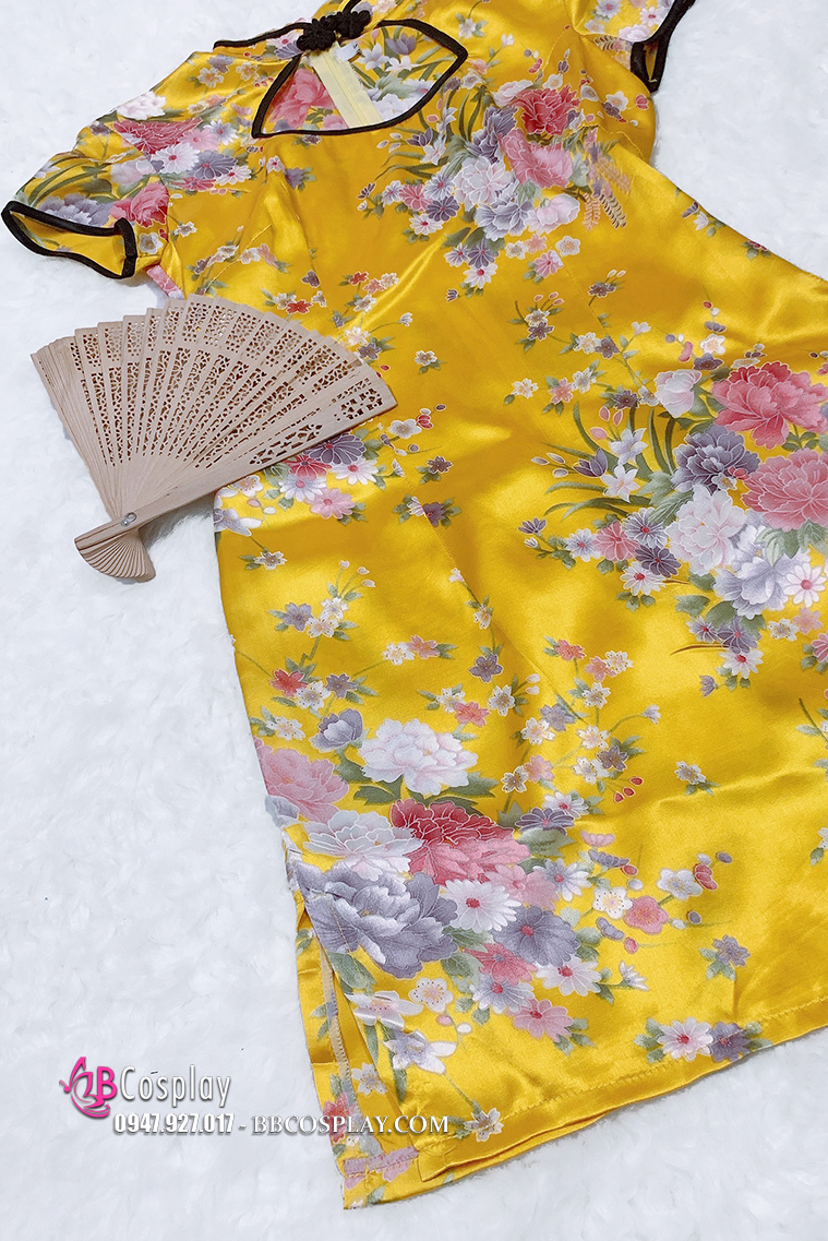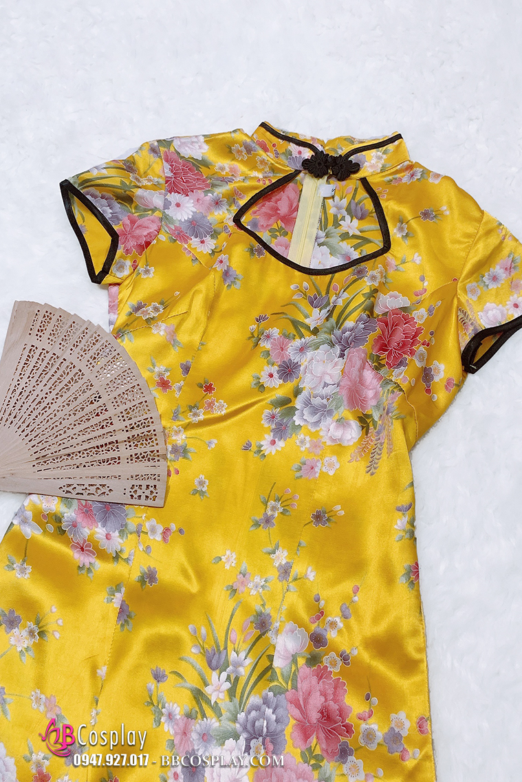 Sườn Xám Bách Hoa Vàng Phi Size M