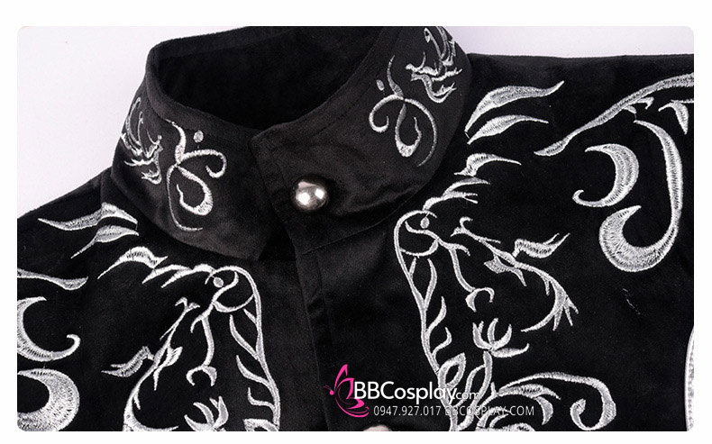 Vest Công Tước Đen Nhung Thêu Họa Tiết