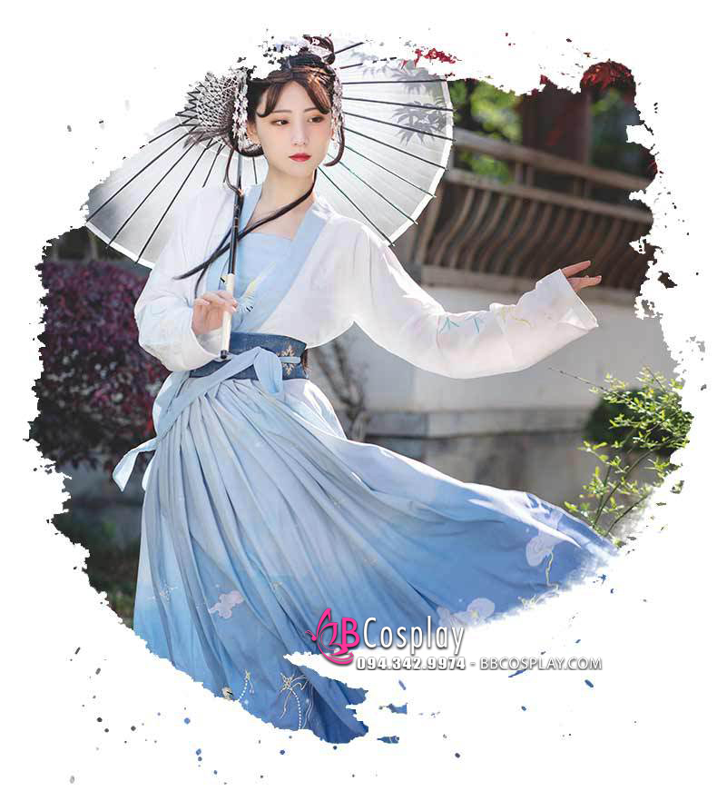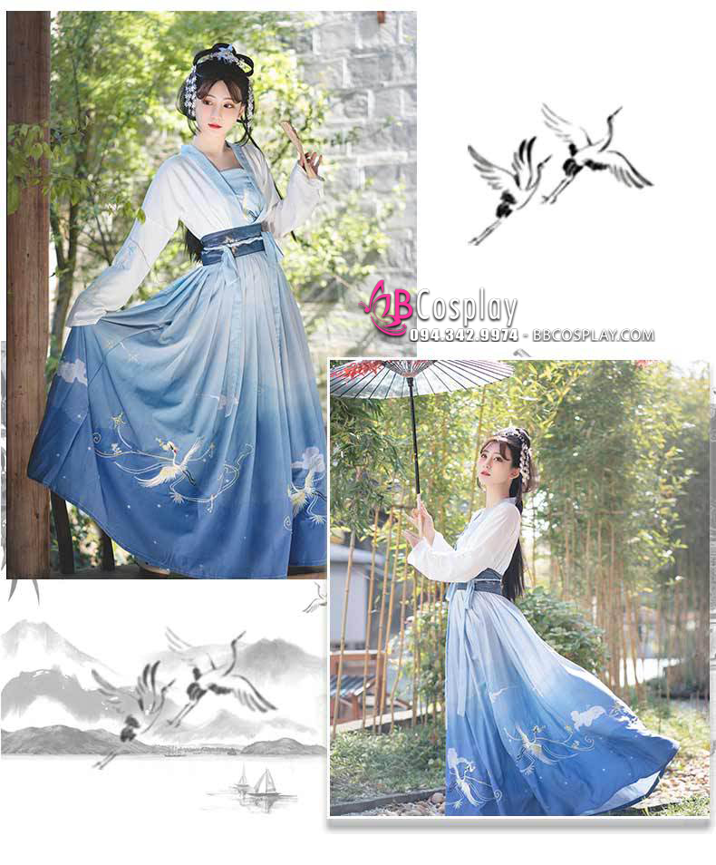 Hán Phục Bạch Hạc Lưu Vân Size S
