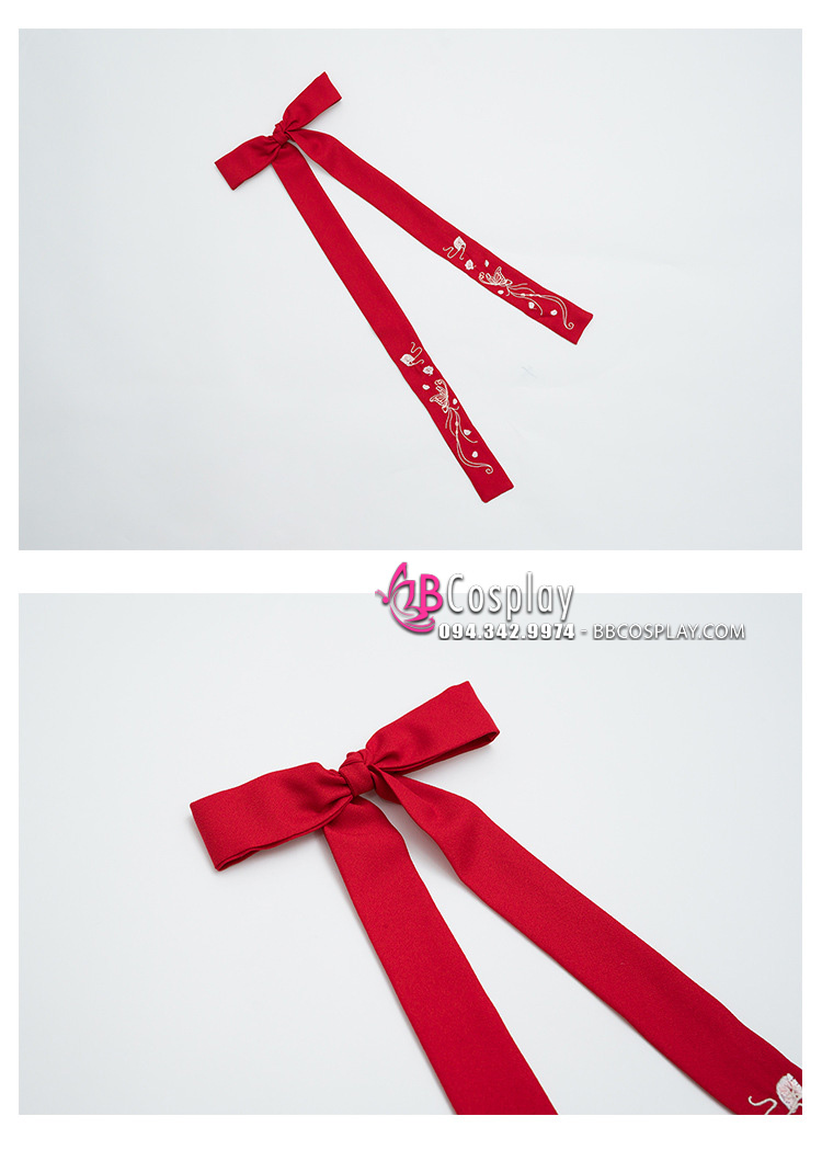 Trang Phục Lolita Đen Trắng Thêu Hoạ Tiết Chân Mèo Kèm Chuông Cổ