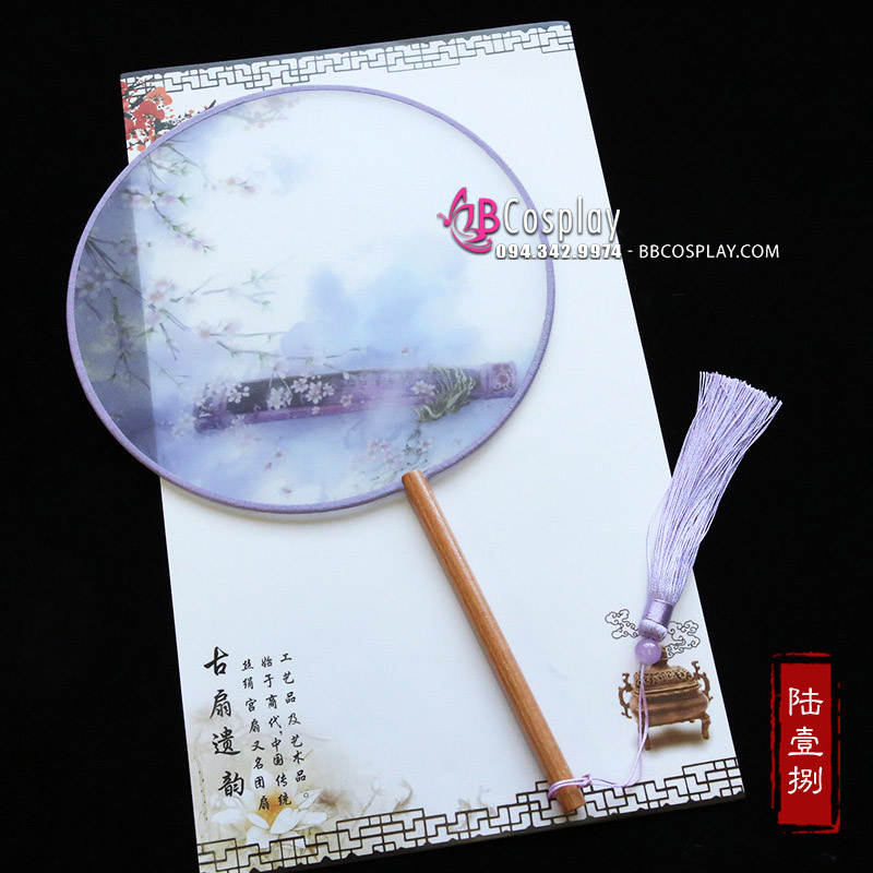 Quạt Tròn Cổ Trang Đào Rơi Trên Cổ Cầm