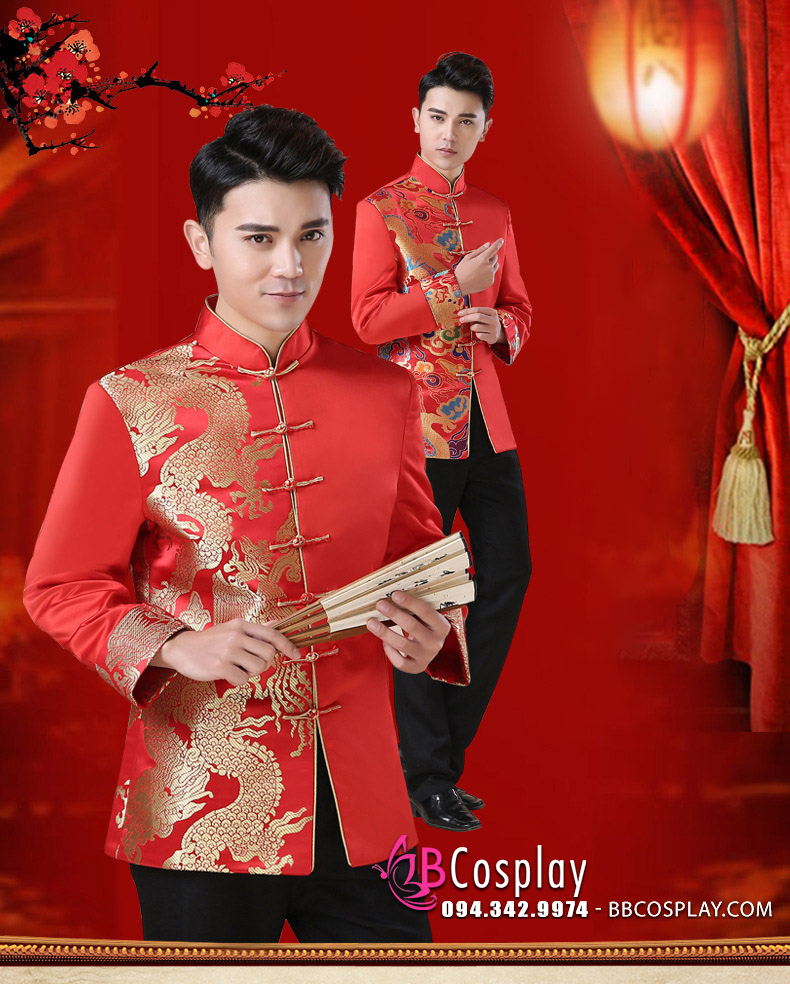 Áo Khỏa Nam Đỏ Thêu Phụng