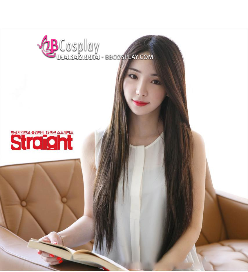 Tóc Giả Chẻ Ngôi Giữa Nâu Hạc Dẻ 70Cm