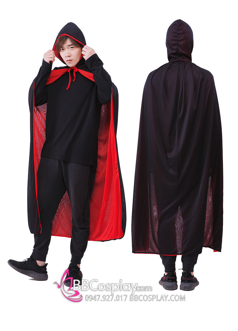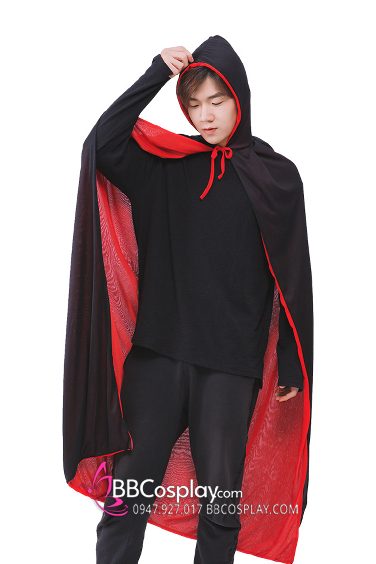 Choàng Halloween Dracula Có Nón Hai Mặt Đỏ Đen