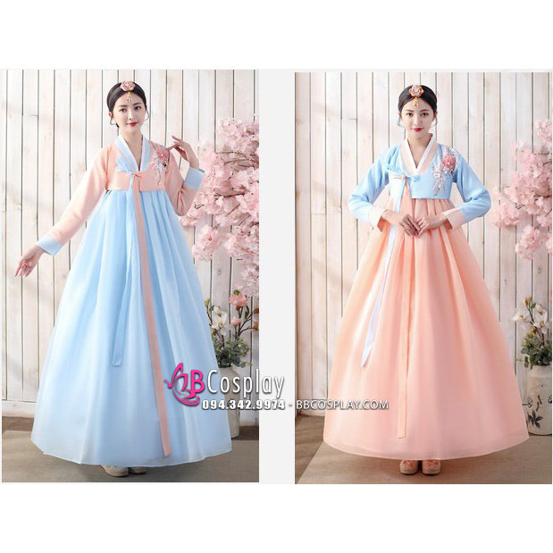 BBCosplay tự hào là một địa chỉ uy tín cung cấp dịch vụ thuê mua Hanbok Hàn Quốc chất lượng. Hanbok Hàn Quốc áo xanh váy carot với dáng váy xòe và thân trên hài hòa giúp che được nhiều khuyết điểm trên cơ thể. Hanbok có thể được sử dụng để chụp ảnh, lễ hội hóa trang,... khiến bạn trở thành người nổi bật nhất trong bất cứ dịp nào!