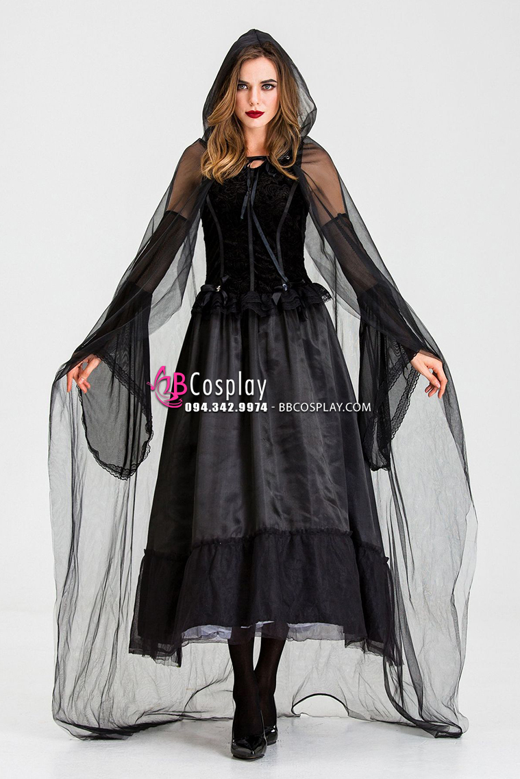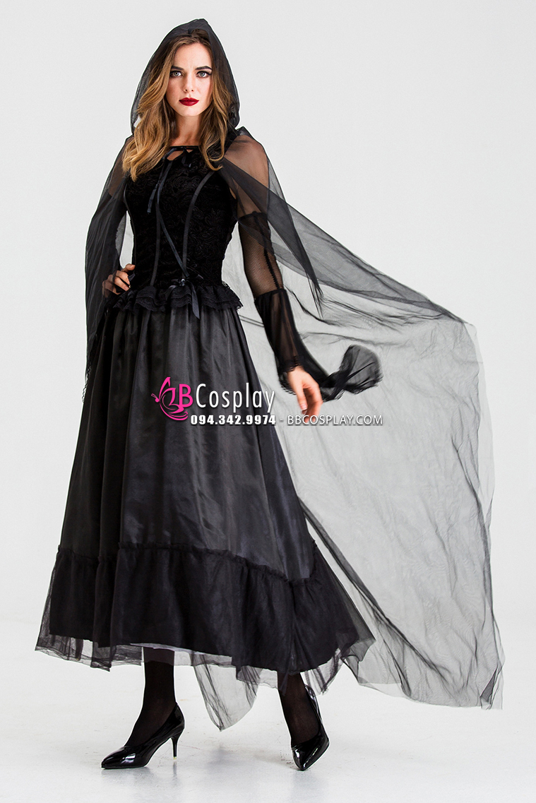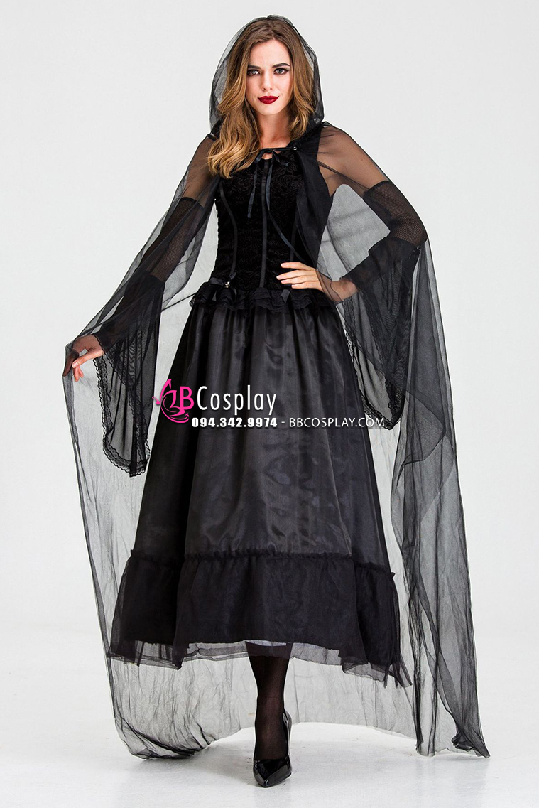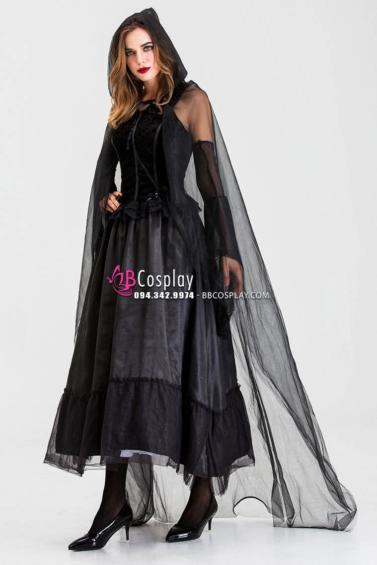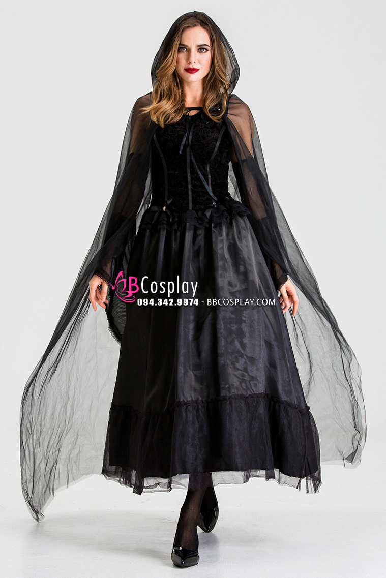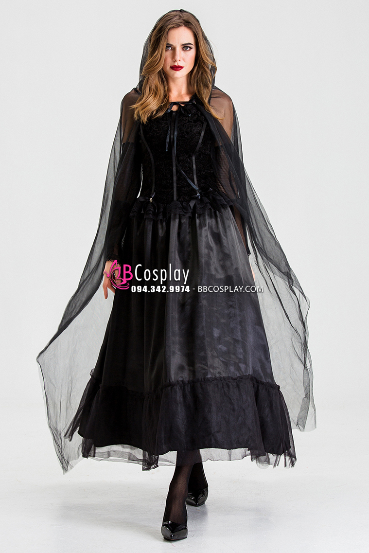 Đầm Phù Thủy Bóng Tối Choàng Voan Đen
