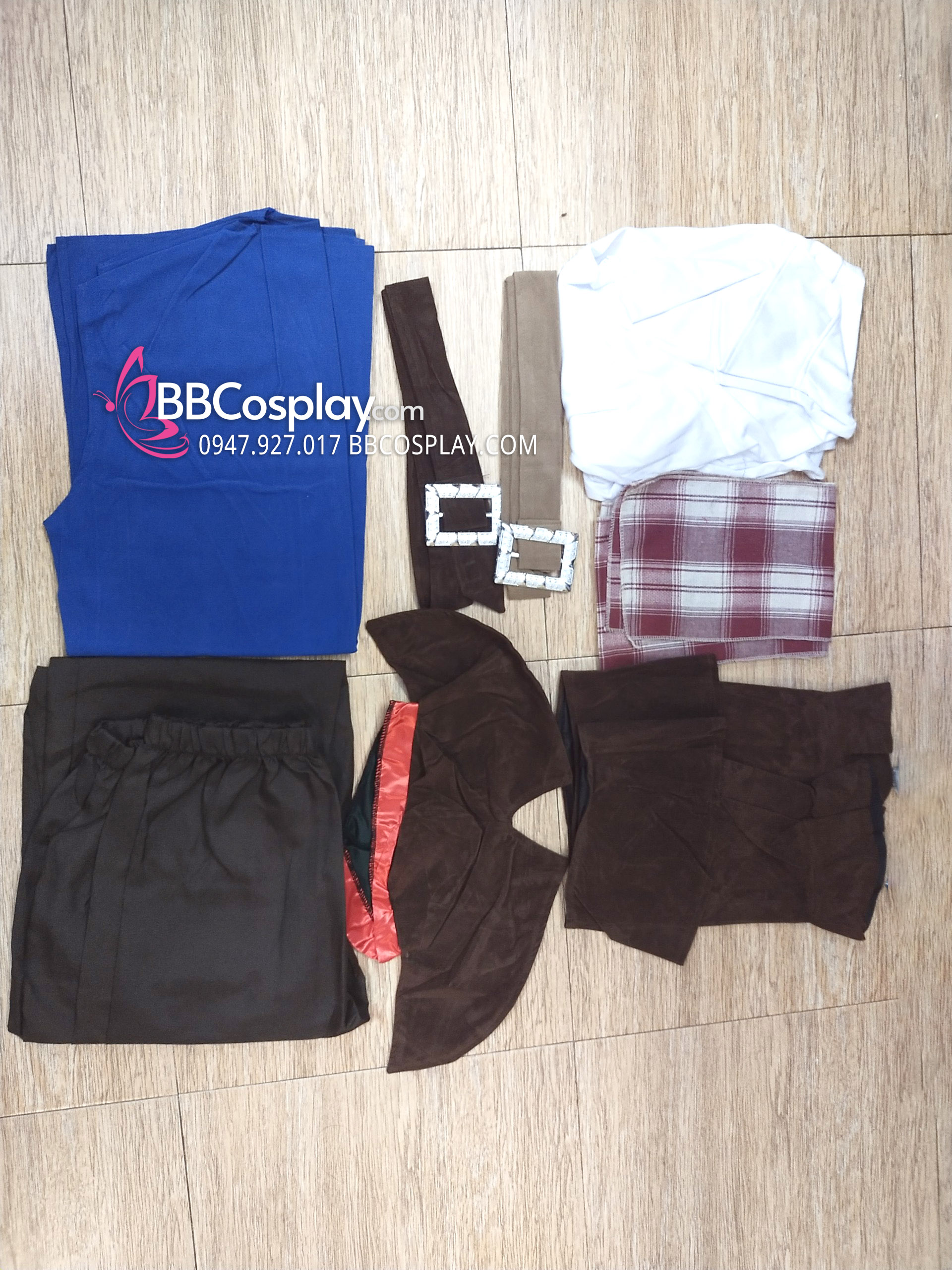 áo trắng + quần + khoác xanh + khăn + 2 thắt lưng