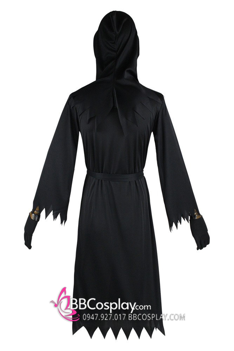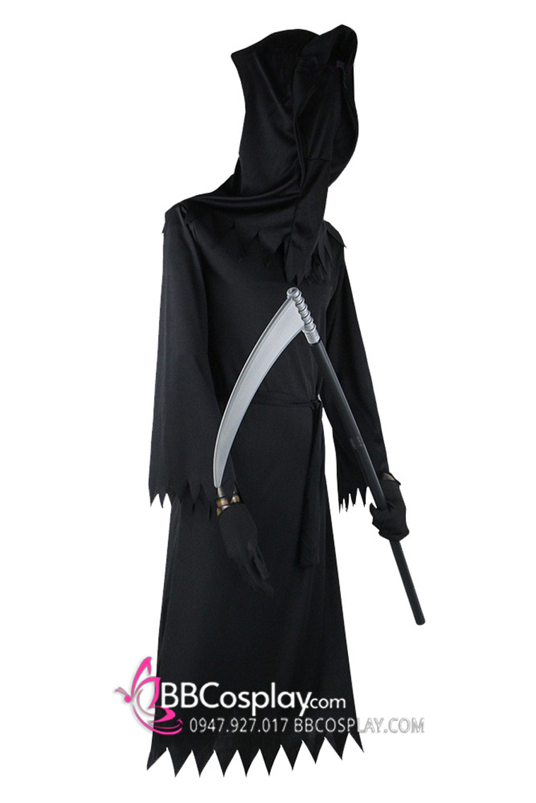 áo + trùm đầu + găng tay đen + thắt lưng + lưỡi hái
