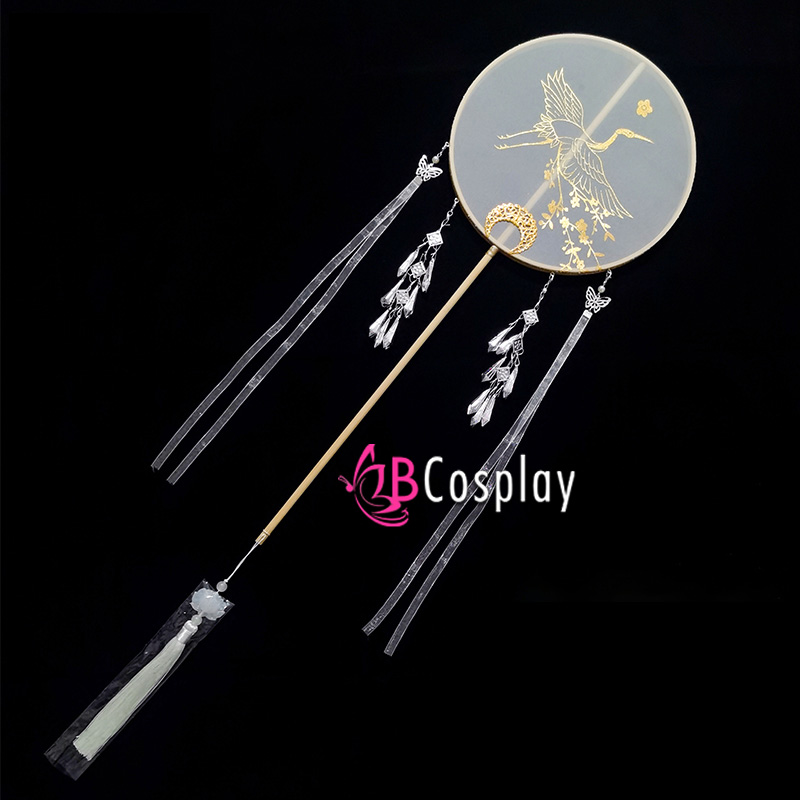 Quạt Mỹ Nhân Trắng Cán Dài - Sếu Vàng