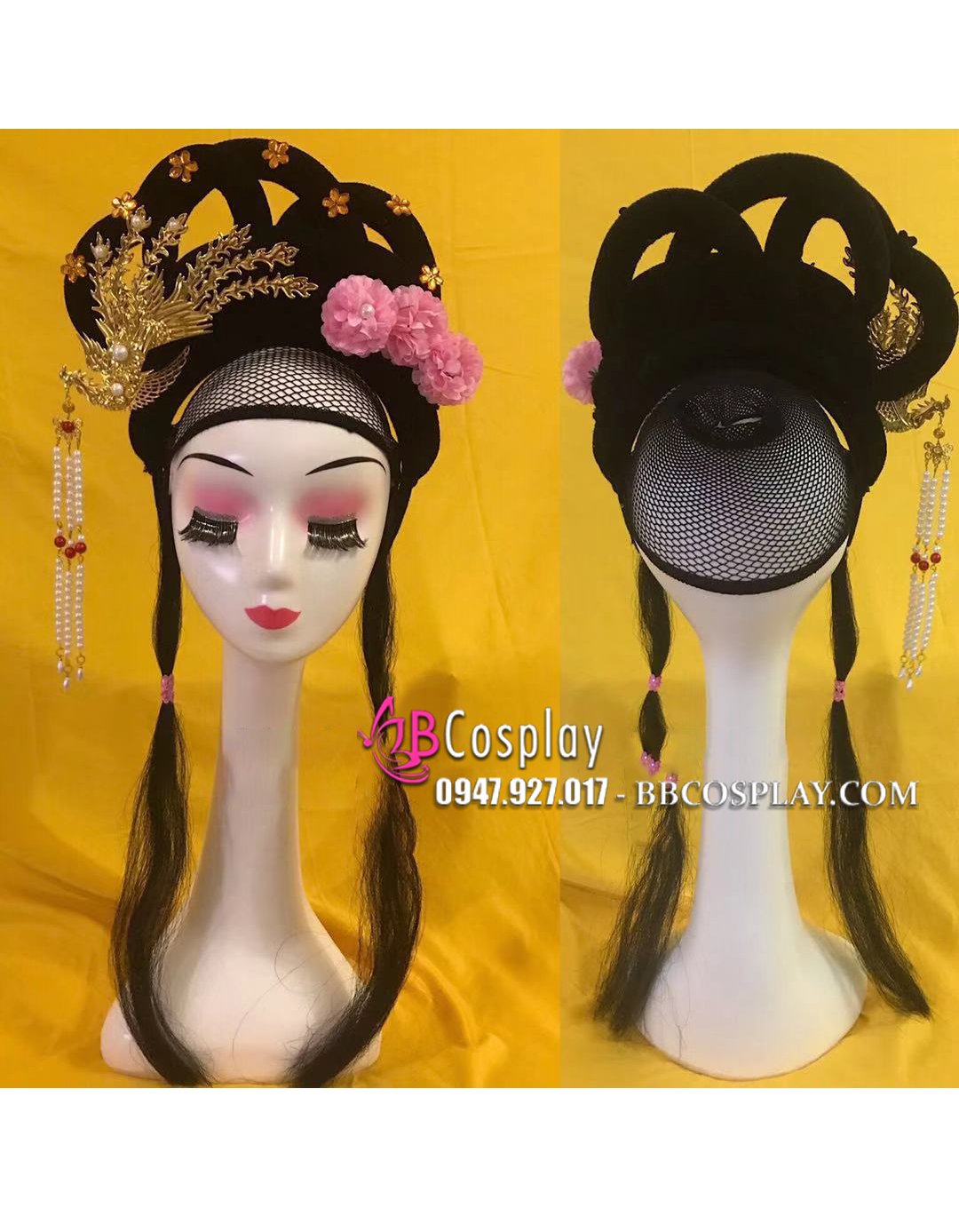 Búi Tóc Giả Cổ Trang Phượng Hoàng - Hoa Cúc Hồng