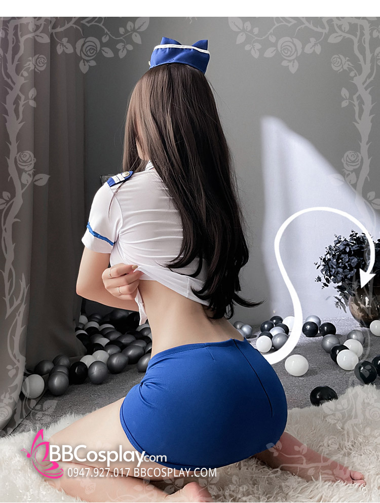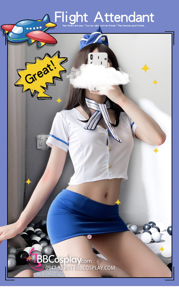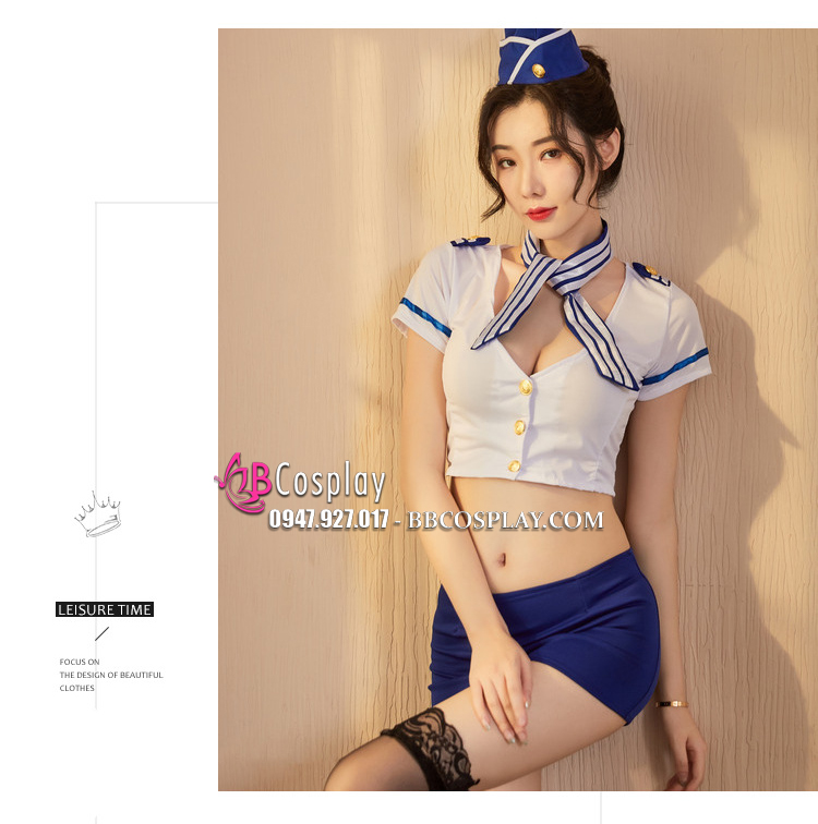 Đồ Tiếp Viên Sexy Áo Trắng Váy Xanh