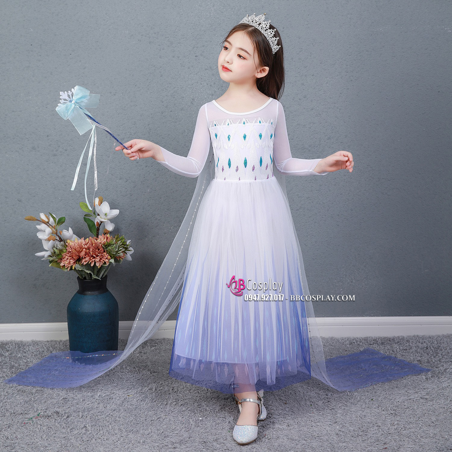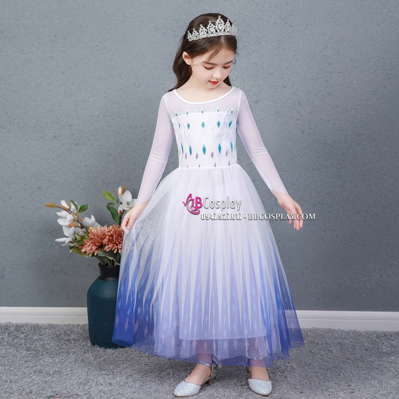 Đầm Nữ Hoàng Elsa Trẻ Em Tone Xanh