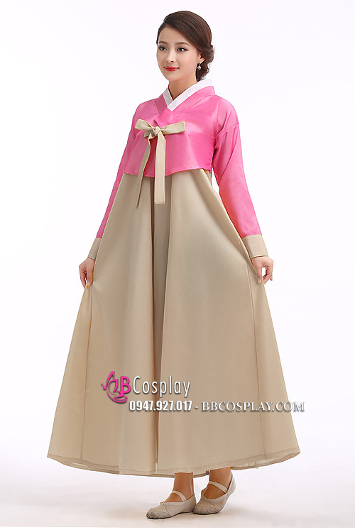 Hanbok Hàn Quốc Áo Hồng Váy Màu Vàng Đồng
