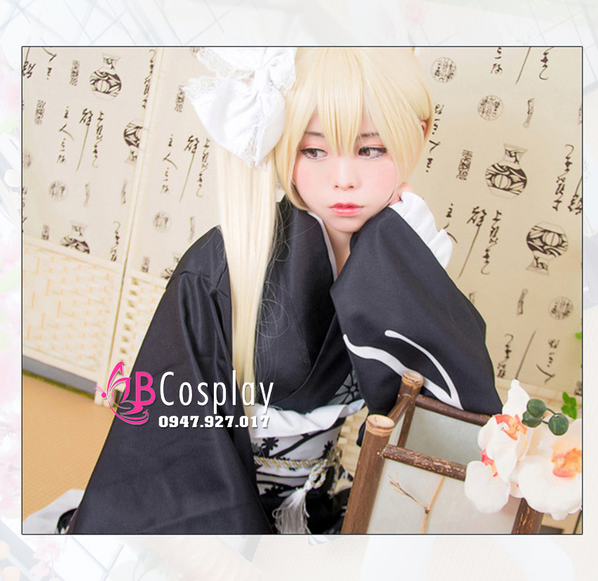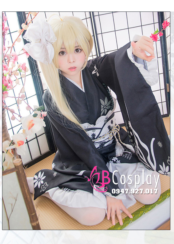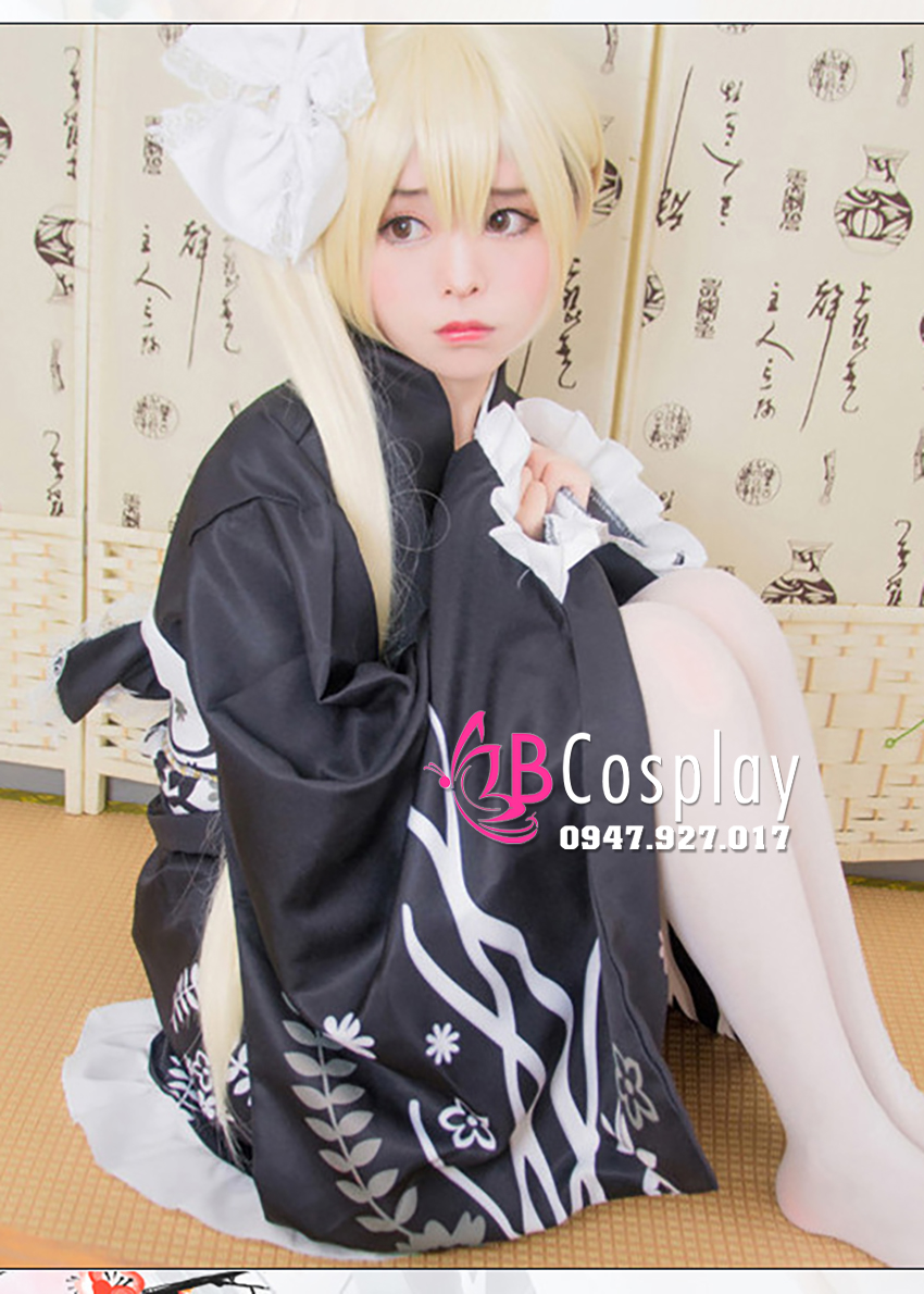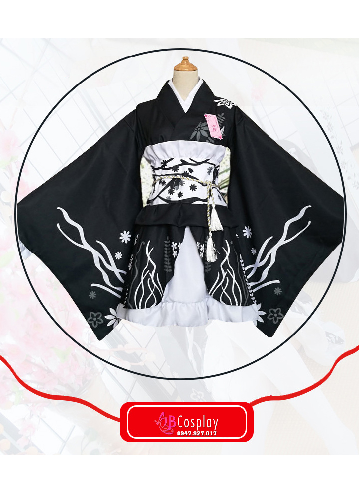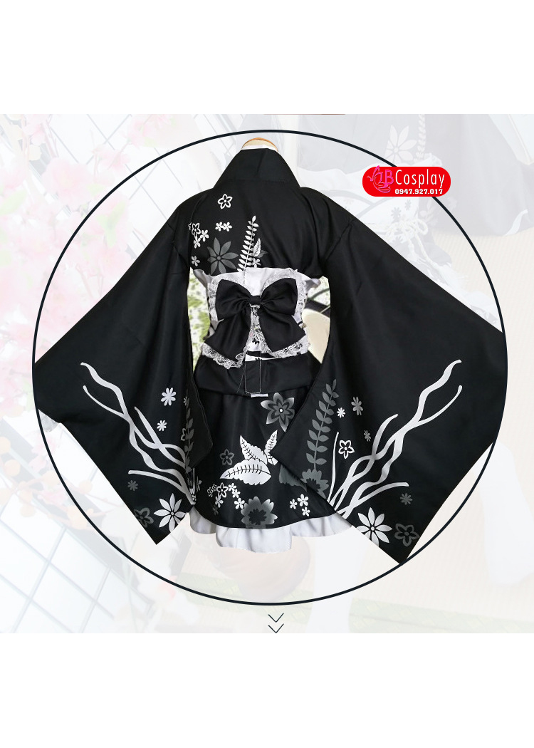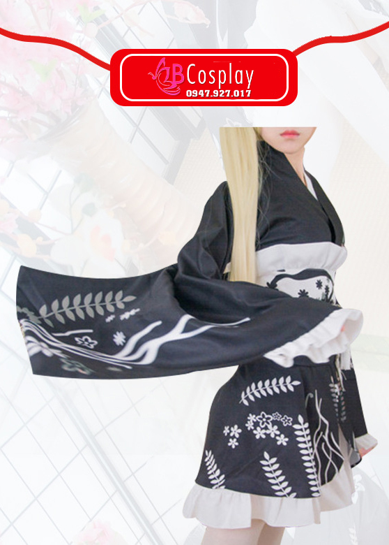 Trang Phục Nàng Hầu Nhật Đen Tạp Dề Trắng Cổ Áo Lá Sen