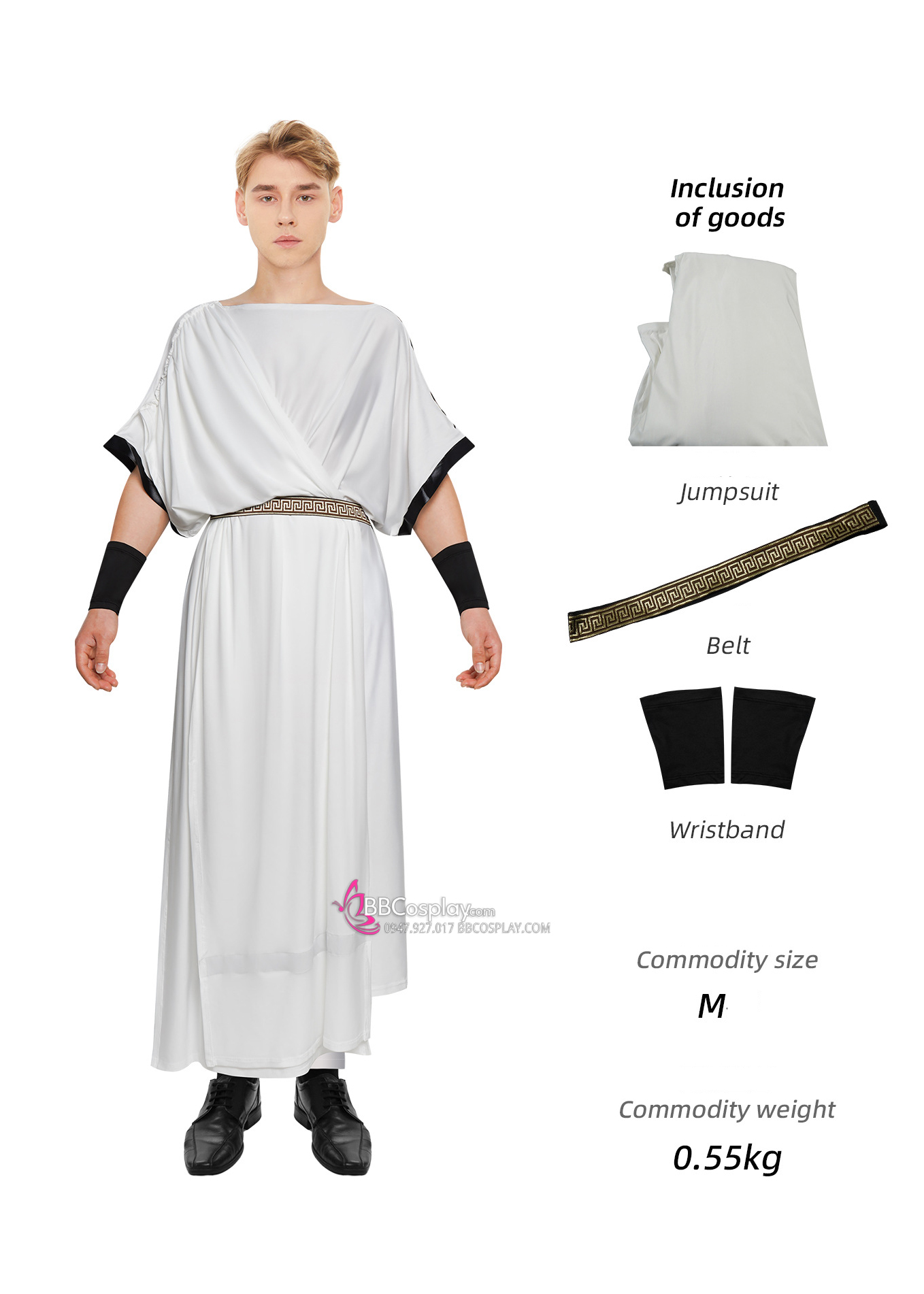 Thành phần: áo + thắt lưng + cặp băng tay