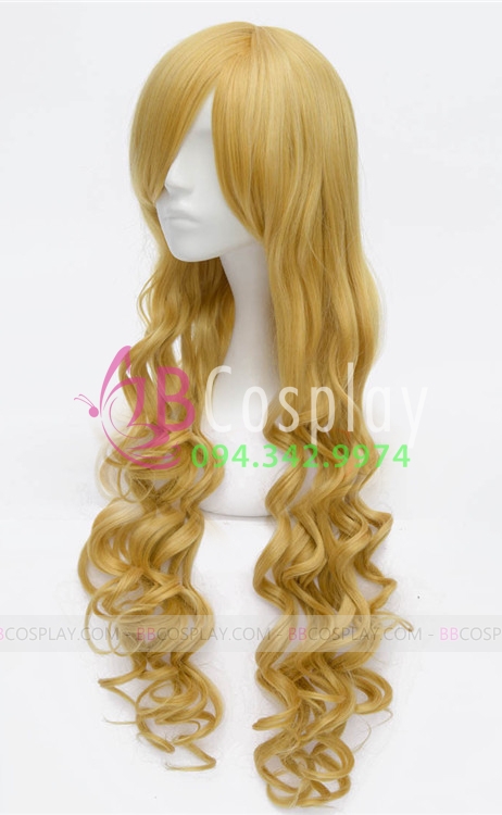 Tóc Giả Vàng Xoăn Dài 60Cm Mái Xéo