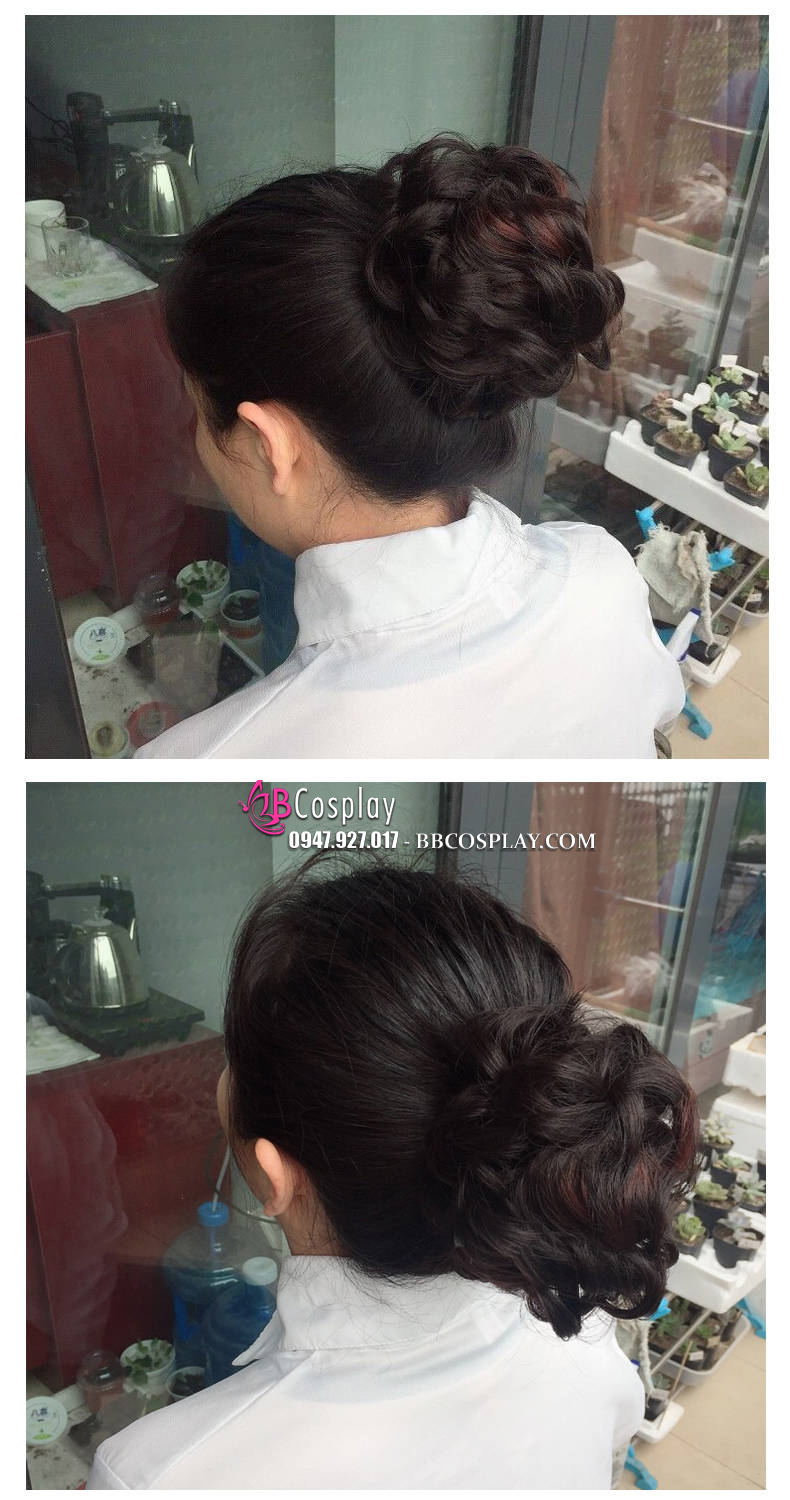 Búi Tóc Giả Xoăn Làm Phồng - Nâu