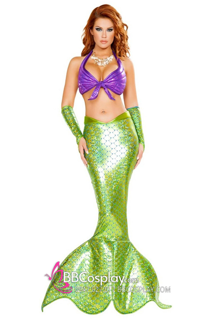 Đồ Công Chúa Tiên Cá Ariel Áo Tím Đuôi Xanh Liền Thân