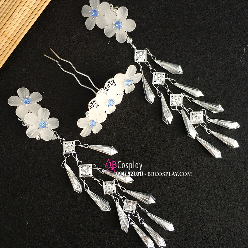 Set Trâm Cài Hoa Trắng Nhụy Xanh