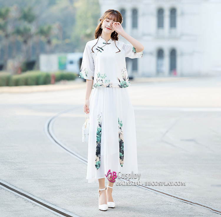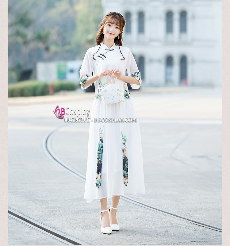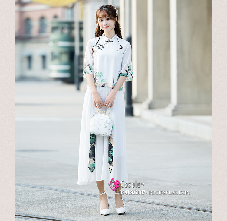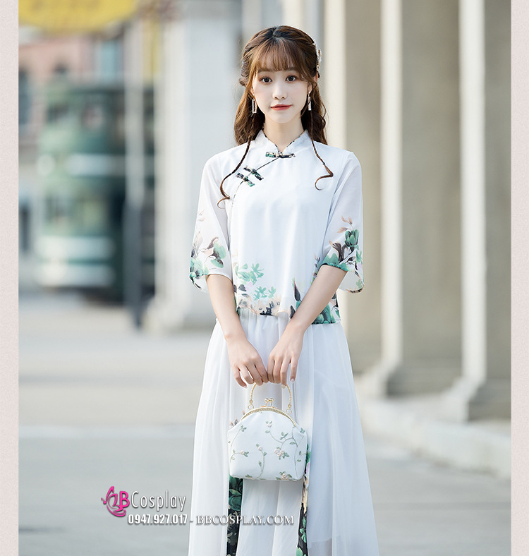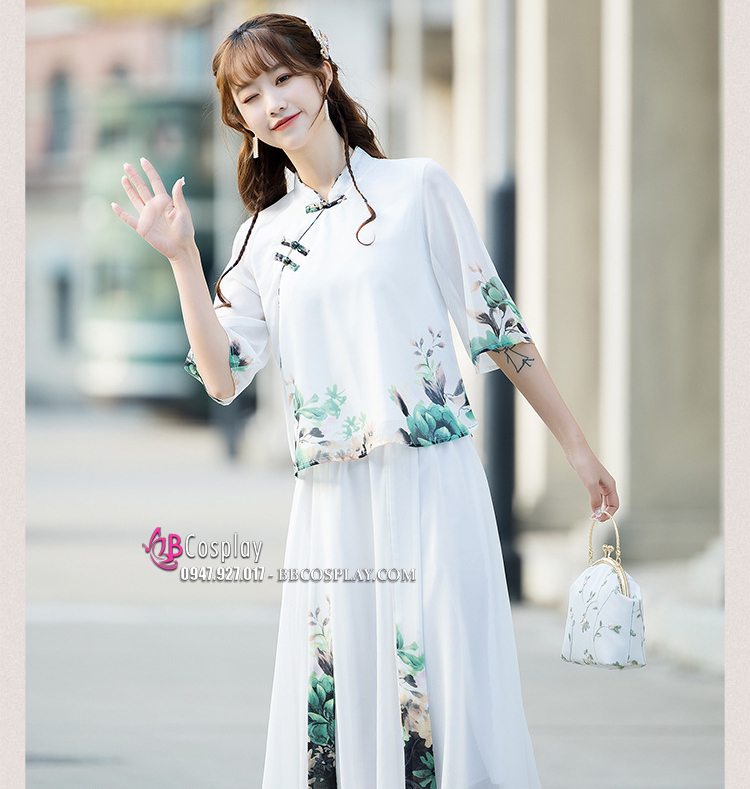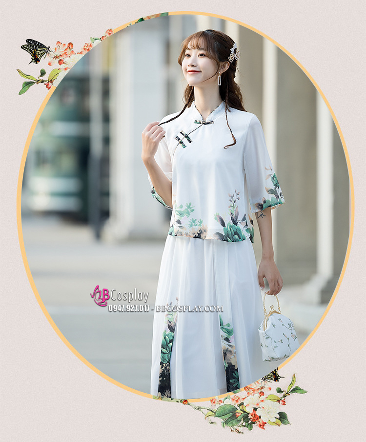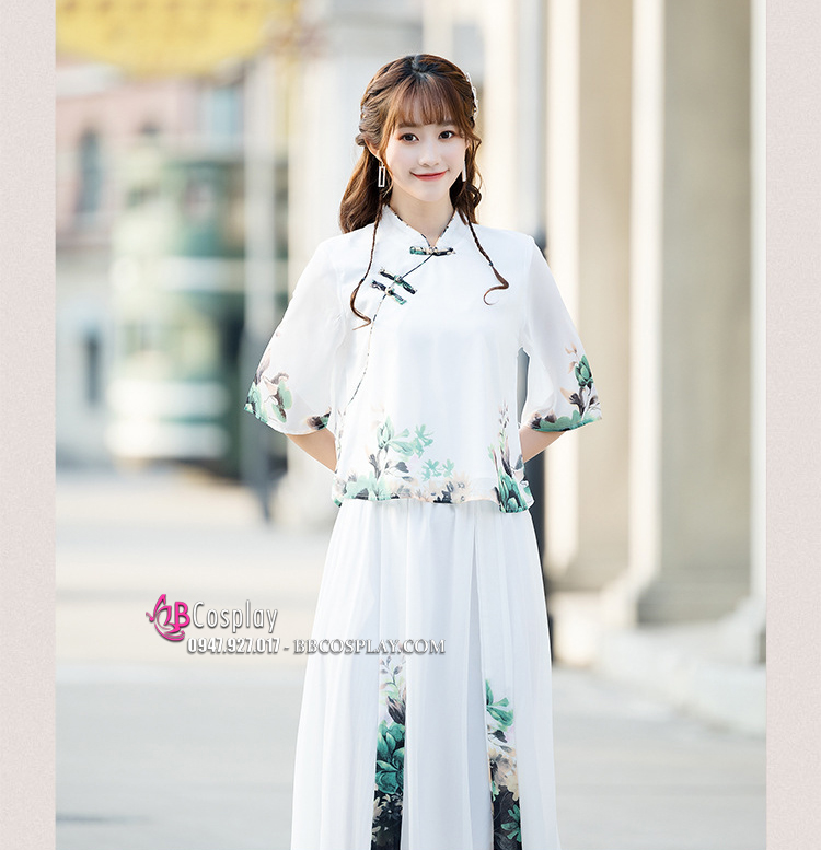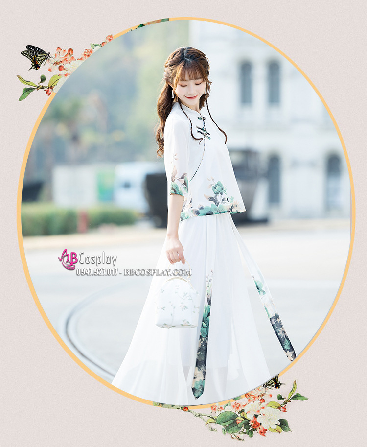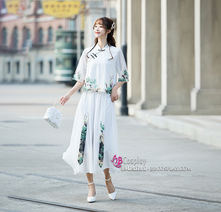 Đồ Nữ Sinh Dân Quốc - Màu Trắng Hoa Xanh